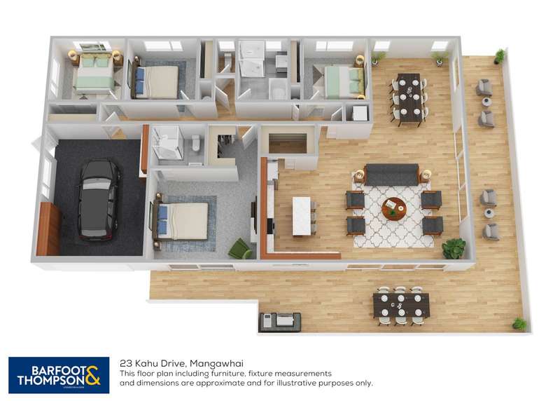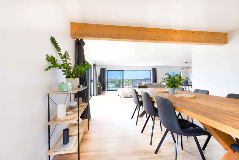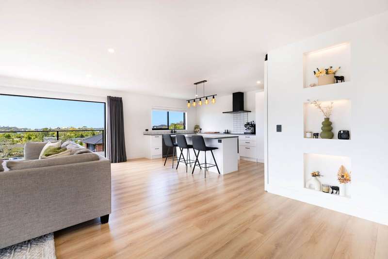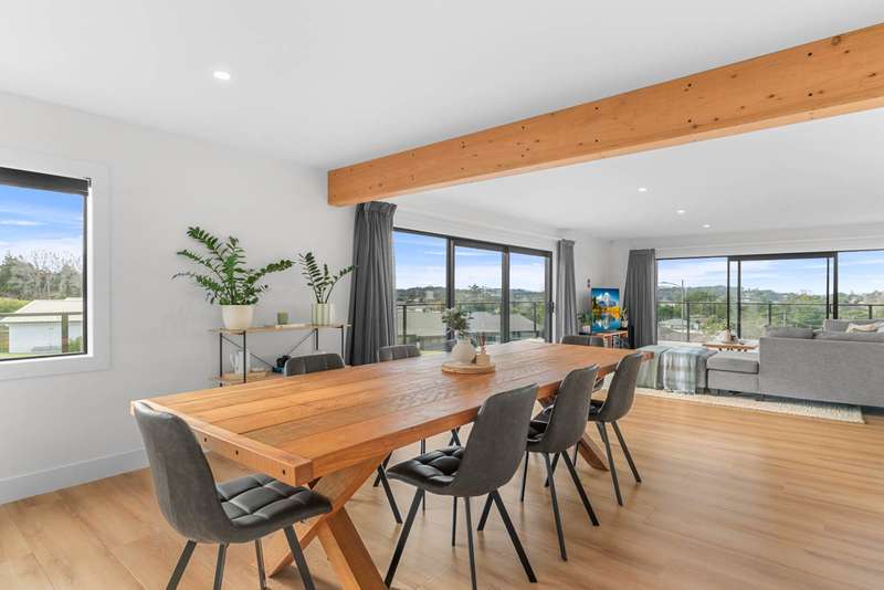 Nestled in the heart of the vibrant and sought-after Mangawhai village, this stunning elevated beach house, epitomizes coastal luxury. With a striking façade clad in vertical shiplap cedar, this 215m2 (approx.) residence exudes charm and sophistication. Step inside to discover a haven of comfort and style, featuring four generously sized double bedrooms, each offering tranquility and relaxation after a day spent by the sea. The main bathroom beckons with a contemporary free-standing bath and sleek LED mirrors, providing a tasteful sanctuary for rejuvenation. The generous master bedroom has views that extend to the inner harbour, a fully tiled shower in the ensuite, and a walk through wardrobe. Entertain in style within the expansive 72m2 (approx) open-plan living area, seamlessly blending functionality with coastal chic. The entertainers kitchen, adorned with quartz benchtops and boasting a fabulous walk-in pantry is a culinary enthusiast's dream. Showcase your possessions on recessed display shelving. The spacious living area opens onto a large wrap-around hardwood deck with views of the inner harbour and dunes, offering a fabulous outlook for gatherings and relaxation. Easy-care landscaped gardens allow you plenty of time to enjoy the many local activities on offer or add your own touches. Convenience is at your doorstep, with shops, cafes, markets, schools, and the inviting waters just a leisurely stroll or bike ride. Golf courses and boat ramp are nearby. Immerse yourself in this fast-growing and popular coastal area, where every day feels like a vacation. Embark on a journey of fabulous coastal living!