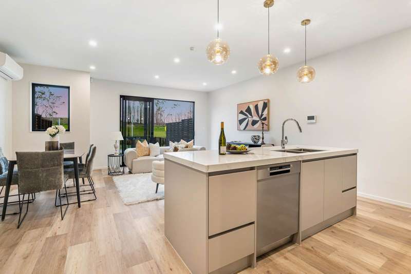 Nestled in the heart of Milldale, this brand-new townhouse combines modern style with low-maintenance living and everyday convenience. Designed across two levels, it’s an ideal choice for first-home buyers, downsizers, or investors seeking a smart and stylish opportunity. Downstairs: Step into the sun-filled open-plan living and dining area, where large sliding doors connect seamlessly to a private outdoor patio—perfect for relaxed evenings or weekend entertaining. The sleek kitchen features a central island, premium appliances, and ample storage, blending practicality with contemporary design. A guest toilet on this level adds extra ease for visitors and family alike. Upstairs: The master bedroom enjoys its own modern ensuite and peaceful reserve outlook, creating a calm retreat. Two additional bedrooms share a stylish family bathroom, while a bonus lounge area offers flexibility—ideal as a study nook, kids’ zone, or extra relaxation space. Perfectly positioned, you’ll be just a short drive to Ahutoetoe School, within walking distance of parks and scenic walkways, and only minutes from Silverdale Mall, motorway connections, and local cafés. If you’re looking for a contemporary, easy-care home in a rapidly growing community, this Milldale gem is one not to miss.