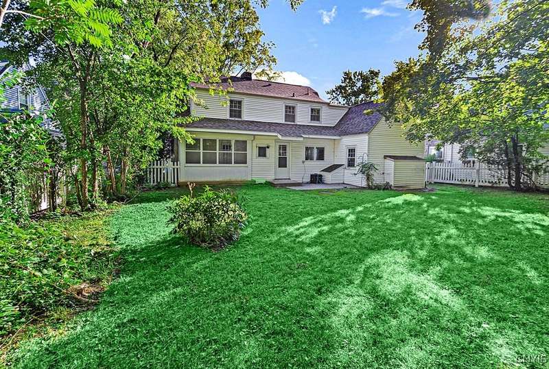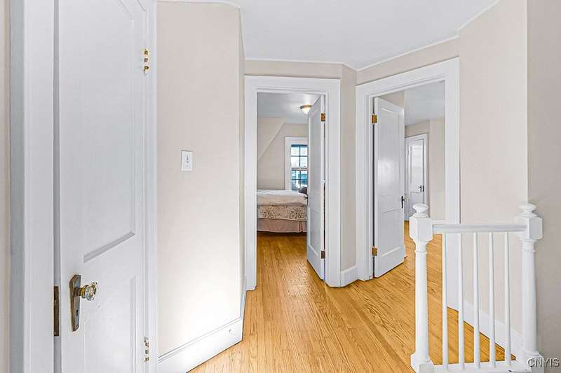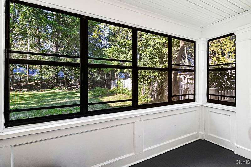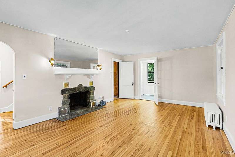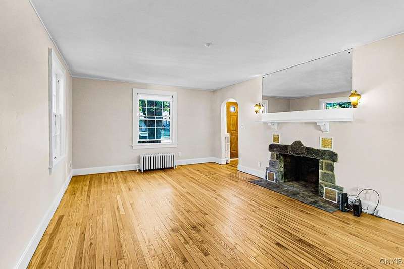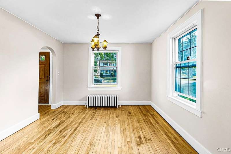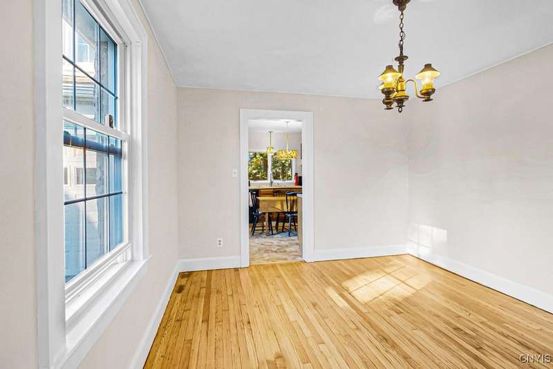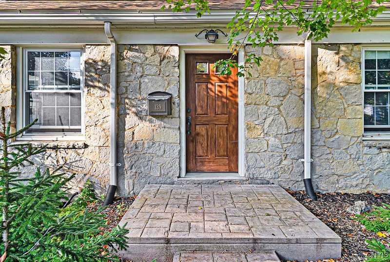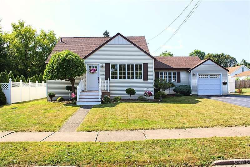 Welcome to this charming stone Cape, full of character and warmth. Inside, you'll find gleaming hardwood floors throughout and a spacious, sun-filled living room perfect for relaxing or entertaining. The traditional dining room flows seamlessly into the eat-in kitchen, complete with ample cabinetry and a convenient half bath nearby. Enjoy year-round comfort in the heated, enclosed rear porch?ideal for morning coffee or quiet evenings. Upstairs, you'll find three cozy bedrooms and a full bath. An attached garage adds everyday convenience. This classic home offers timeless appeal in a welcoming setting.