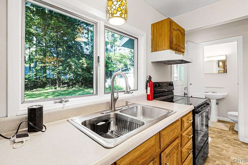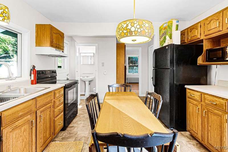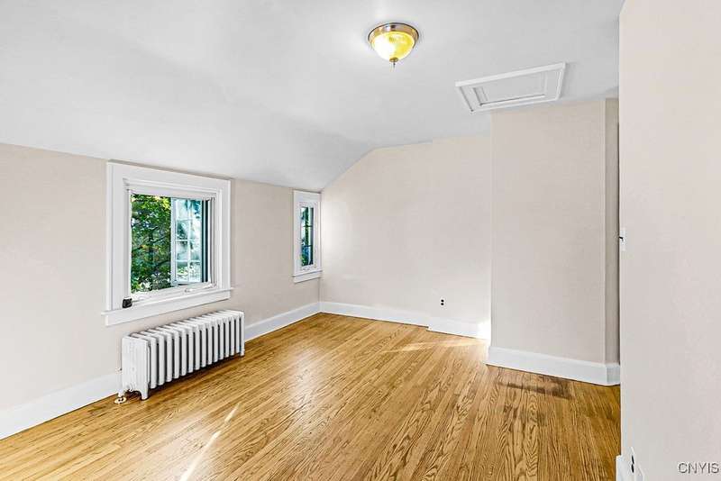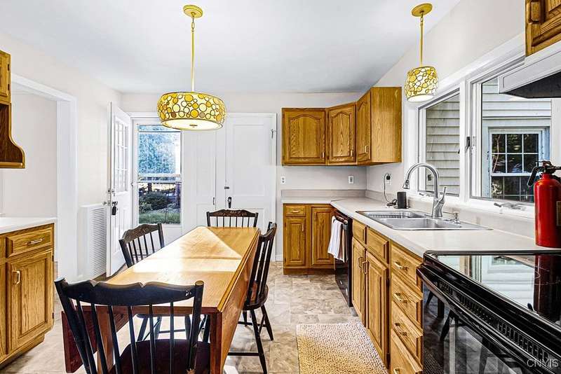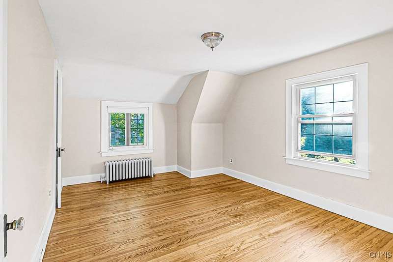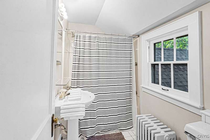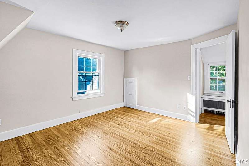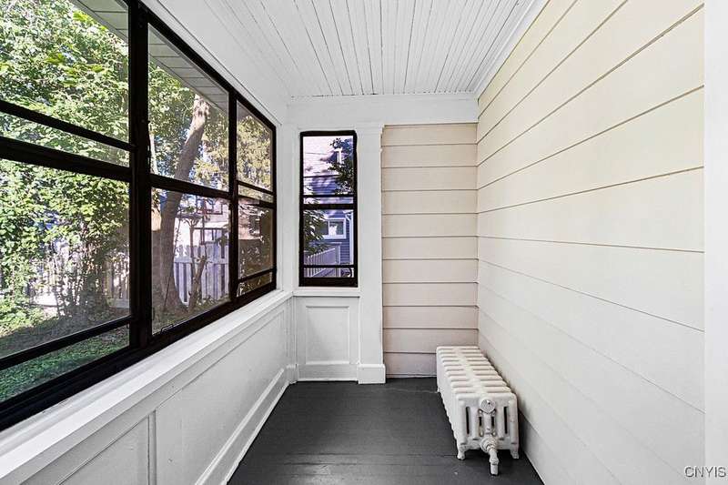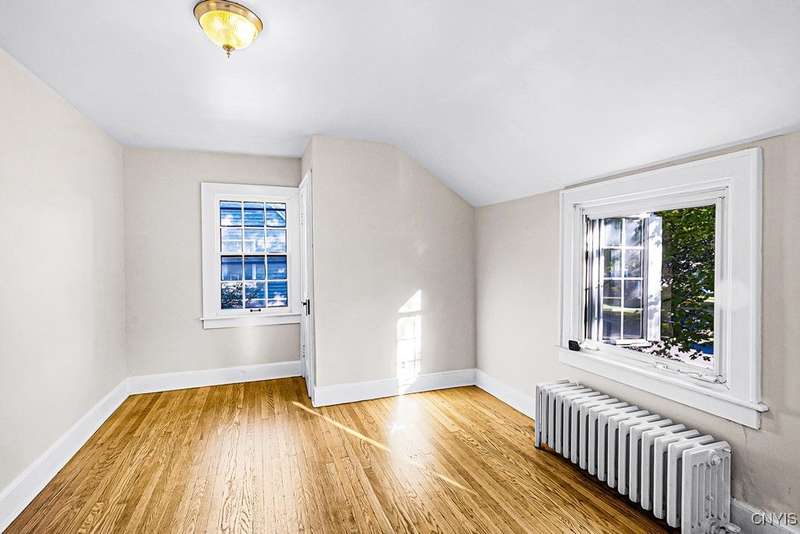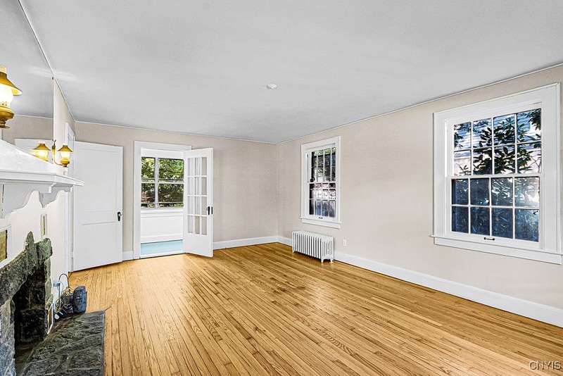 Welcome to this charming stone Cape, full of character and warmth. Inside, you'll find gleaming hardwood floors throughout and a spacious, sun-filled living room perfect for relaxing or entertaining. The traditional dining room flows seamlessly into the eat-in kitchen, complete with ample cabinetry and a convenient half bath nearby. Enjoy year-round comfort in the heated, enclosed rear porch?ideal for morning coffee or quiet evenings. Upstairs, you'll find three cozy bedrooms and a full bath. An attached garage adds everyday convenience. This classic home offers timeless appeal in a welcoming setting.