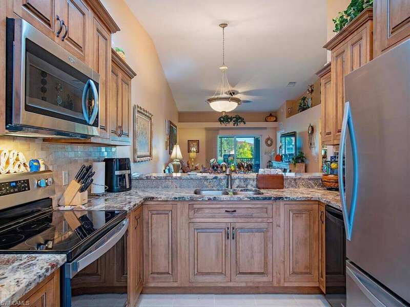 Full Golf Membership Included! This inviting 2-bedroom plus den, 2-bathroom condo features tranquil lake views. This home includes front and back lanais, and a detached one-car garage. Step inside to a welcoming great room with vaulted ceilings. Ample natural light enhances the warm color pallete. This generous floor plan flows seamlessly into a remodeled kitchen featuring granite countertops, custom cabinetry, Whirlpool stainless steel appliances, and tasteful lighting - perfect for entertaining family and friends. Both bathrooms have been tastefully remodeled with modern finishes and thoughtful design. The primary suite offers serene lake views, a walk-in closet, and a beautifully updated en-suite bath. The den with Murphy bed offers flexibility as an office or guest room, while custom closet systems, newer blinds and screens, and a NewAir 46-bottle wine cooler add comfort and convenience throughout. Enjoy your morning coffee or an evening glass of wine on the screened lanai, where peaceful water views create a perfect backdrop for relaxation. Cypress Woods Golf and Country Club is one of the premier bundled golf values in Naples. In addition to the great Gordon Lewis 18-hole golf course, there is also a newly renovated driving range and practice area, pickleball courts, tennis court, full-service pool and a beautiful clubhouse - with excellent dining and social opportunities. Nearby community pools are also available within the Cypress Trace neighborhood. Cypress Woods is pet friendly and represents a welcome opportunity for investors seeking new rental possibilities.