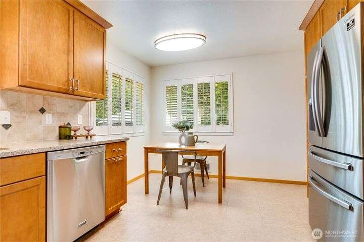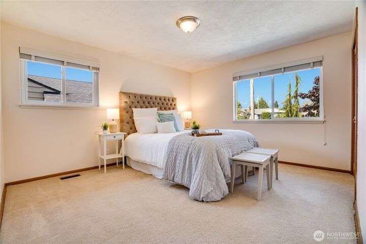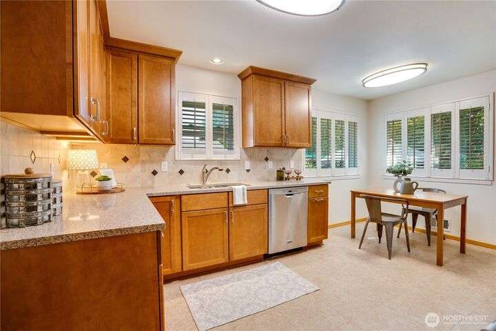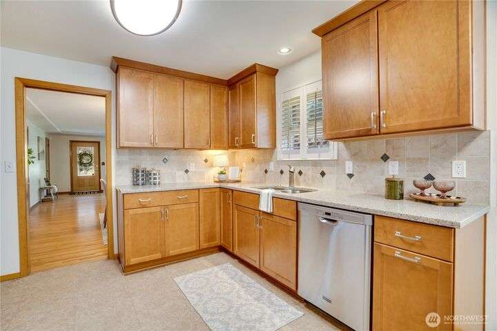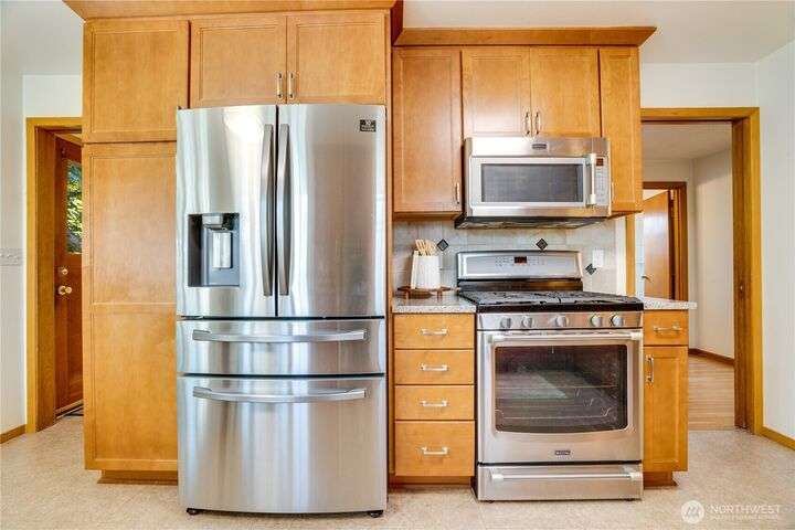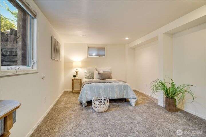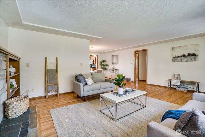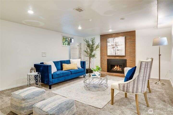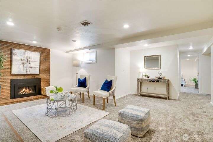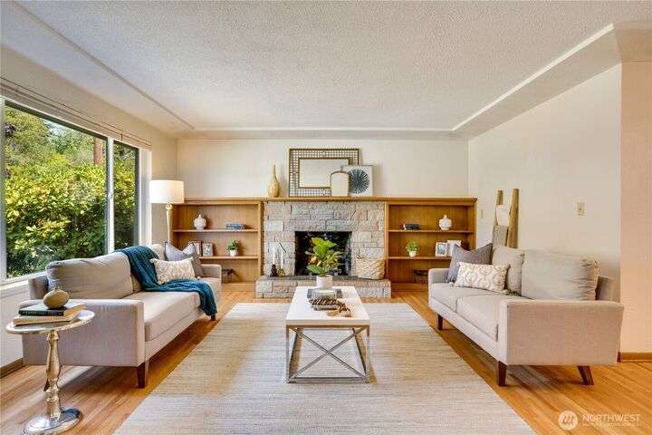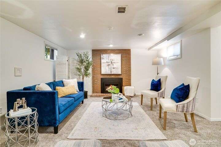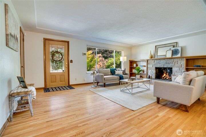 Watch the seasons shift through the tree-filled window of this North Tacoma Mid-Century. Updated where it matters: new A/C (2023), sewer line & dual sump pump w/drainage. Oak floors and built-in bookshelves frame the wood-burning fireplace, w/3 bedrooms & a full bath completing the main level. Downstairs offers a spacious bonus room w/gas fireplace, perfect for movie nights or play, plus a 4th bedroom with walk-in closet & 3/4 bath, ideal as a private suite. Laundry, extra storage & garage add everyday ease. A canopy of trees shades the level yard w/pavers, creating a true North End retreat. Pre-inspected & blocks from Jefferson Park, Proctor & 6th Ave dining. This clinker brick blends timeless character & smart updates with room to grow!