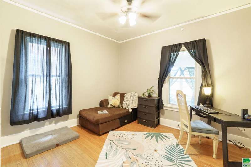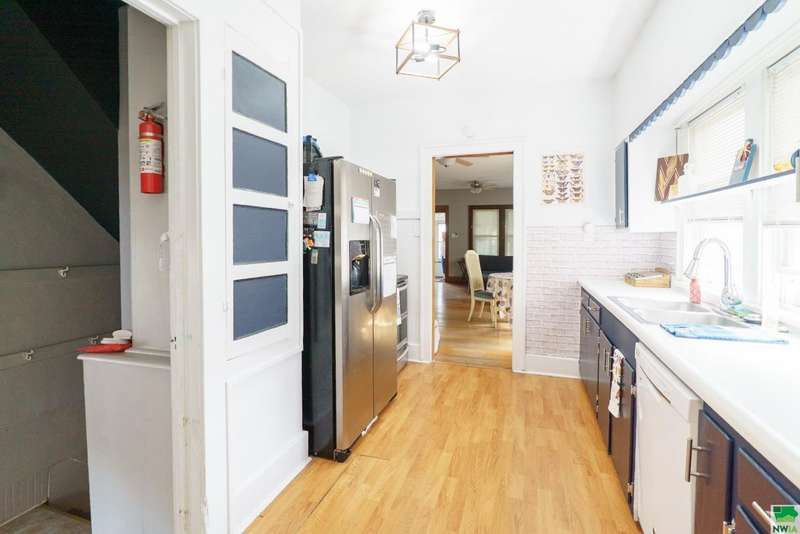 This inviting property offers two bedrooms on the main floor plus a finished dormer, giving you plenty of living options. The basement has been thoughtfully finished with new carpet, newer doors, and a sprayed black ceiling for a modern touch. Downstairs youll also find a second bathroom featuring a walk~in shower, new flooring, a new vanity, and fresh paint. An additional finished living space and office make the basement both functional and versatile. The main floor showcases hardwood flooring in most rooms, while the dormer also features hardwoods, adding warmth and character. Much of the interior has been freshly repainted, and the exterior has been updated with a fresh coat of paint as well, giving the home a bright and airy feel throughout. As you step inside, youll be welcomed by a cozy 3~season porch leading into the living room. The open layout flows seamlessly into the dining area and kitchen. Just off the kitchen, an additional room provides abundant cupboard and counter space ? ideal for storage, a prep area, or even a walk~in pantry. Practicality meets convenience with a dedicated laundry room and extra storage areas. Outside, the oversized two~stall detached garage with vinyl siding is accessible from the maintained city alley, and the fenced yard offers both privacy and space to enjoy. This home has been lovingly maintained and improved over the years, making it move~in ready for its next owner...