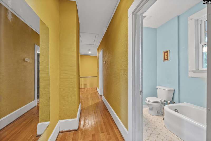 Love Where You Live - in the heart of one of Columbia's well established downtown neighborhoods, Hollywood-Rosehill......welcome to 107 Southwood! This home has inviting curb appeal, hardwood floors throughout, 9ft ceilings and an abundance of natural light. The various rooms on the 1st floor provide many gathering options with family and friends. The living room, with a cozy fireplace, opens into the dining room and the music room/office/study. A den, tucked off on the "other side" of the home, is a comfortable room for reading, games, and tv. Bedroom on 1st floor connects with the 1/2 bath. The beautiful kitchen has gas range and double ovens, a pantry and plenty of under counter storage - there is even a good reading nook directly in front of the window! Outdoor grilling area, directly outside the kitchen, overlooks the fenced in backyard. Upstairs, the spacious primary bedroom has an en suite bathroom with double vanity, shower, walk in closet. Each of the other 2 bedrooms have bathrooms in the hall, one with a shower while the other bathroom has a tub. The floor plans that are provided in documents include the unfinished basement; this is great storage space. This home is in walk/bike zone to the neighborhood schools, grocery stores, cafes, and restaurants. Disclaimer: CMLS has not reviewed and, therefore, does not endorse vendors who may appear in listings.
