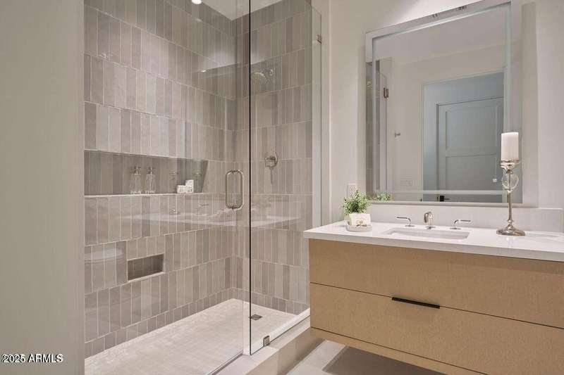 World class modern living awaits at Unit 108 at the Ascent at the Phoenician. This brand new first floor luxury condominium home offers 2 bedrooms 3 bathrooms plus a Den. Indoor outdoor living & dining is seamless w expansive moving glass walls & doors that open to an expansive terrace. Clean modern design meets natural materials in this warm open concept w Vallone Design aesthetic. Custom bulthaup Kitchen, European oak floors, Waterworks fixtures, gourmet Wolf/SubZero appliances & 10' ceilings create an inviting calm ambiance. The Primary Suite offers a spa inspired earth toned Primary Bath w soaking tub, a walk-in closet & access to your private terrace. An additional Bedroom w en-suite Bathroom, plus a Den close-by make this design conveniently functional. The exclusive Mountain Club, A private clubs for Owners, provides the ultimate in luxury recreation with a well-appointed fitness & movement room, gorgeous party room, sparkling private pool & private rooftop terrace with 360 views of both Camelback Mountain & the Valley. Access to amenities at the adjacent Phoenician Resort provides a truly active desert lifestyle. Top your modern living off with a private entry gate to the community complete with guard house, a refined wood front door & entry, expansive glass windows for natural light, a custom Living Room gas fireplace, an outdoor built-in-BBQ, a beautiful Laundry Room, custom Lutron roller shades, 9' ceilings in bedroom & bathrooms, 8' solid core interior doors w lever hardware & an elegant Powder Room w limestone countertops. Secure garage parking for 2 cars w EV charging stations. Come tour this never been lived in home and take advantage of this rare opportunity.