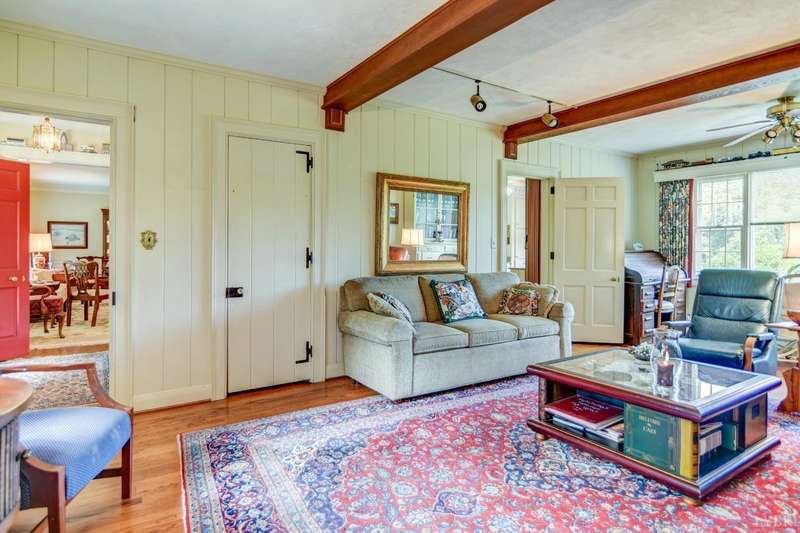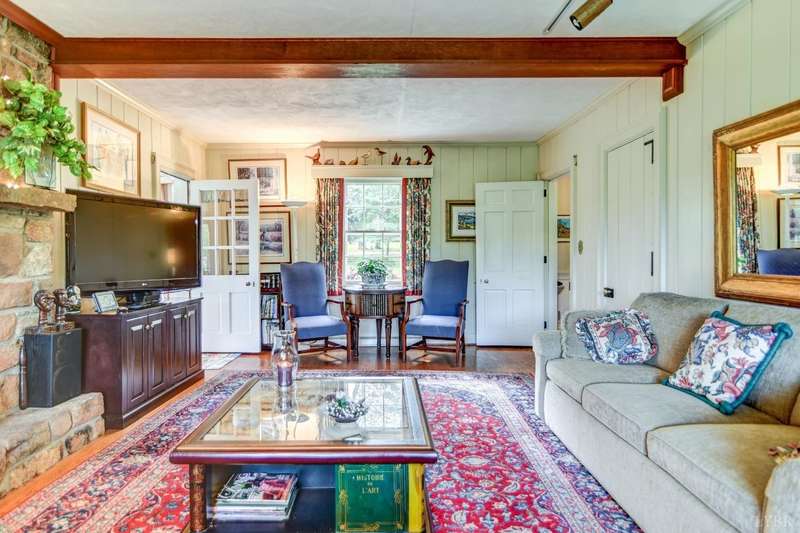4 BR Boonsboro Beauty presents as a 1 1/2 story, yet boasts a 2BR, bath, recreation area & office addition at the rear, expertly integrated in the mid-1970s. Situated on nearly two acres, the property offers ample seclusion and is convenient to an array of amenities, including shopping, schools, public pool & tennis facilities, exceptional dining along with Boonsboro & Oakwood Country Clubs. Main level features a spacious living room with fp, 2 BRs, 1.5 baths, kitchen & pantry, dining room, cozy den with Fieldstone fp & a sunroom. Upstairs are 2 generous BRs, one with a deck & attic storage, the other with a double closet & dressing area/walk-in closet, as well as an office with an electric fp, oversized closet, and 3 dual-shelf storage areas with doors. The basement houses a workshop area and storage space, and a 1 car garage. A lovely yard - trees along the frontage, a park-like swing set, garden area, further back it slopes down to a small creek, plus enjoy winter mountain views.