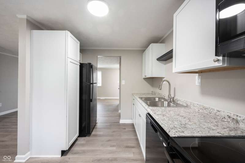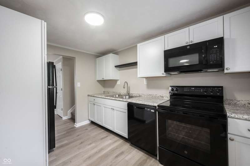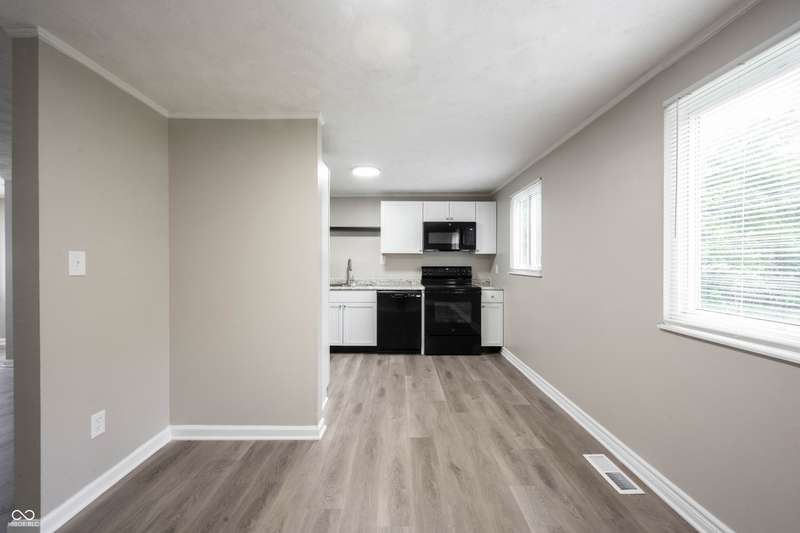 Welcome home to Sheffield Woods! 3 bedrooms, 2 bath home, offering plenty of space, all the updates, and a backyard with privacy and a view of mature trees! Striking curb appeal with crisp white exterior and black accents. Open the door to NEW laminate vinyl plank flooring flowing seamlessly throughout the first floor and FRESHLY painted! Open concept floorplan, great room/living room open to dining area and kitchen. Kitchen features plenty of cabinets and counter space, brand new appliances, all included, finished off with satin nickel hardware! Dining area located off the kitchen, with a continuation of the LVP flooring, and plenty of natural light and views of the large fully fenced backyard with a backdrop of mature trees! Upstairs you will find an abundance of space with 2 bedrooms, BRAND NEW carpet and PAINT throughout! Generous sized full bath with updates such as flooring, fixtures, vanity, make this a great updated space! Owners' Suite on the lower-level features an ensuite bath, large walk in closet, and close proximity to the laundry room for convenience! Step outside into the fully fenced backyard and picture yourself enjoying your patio this Summer! This backyard is just waiting for your next cookout! Attached garage with plenty of space and utility door to the backyard. Notable Mentions: New Roof 24, Paint, Carpet, Flooring, Kitchen Cabinets, Counters, Appliances, the list goes on! Great location with easy access to interstate I-70 and 465. Close to shopping and dining, and all of what makes this property centrally located and convenient!