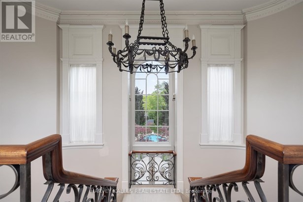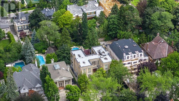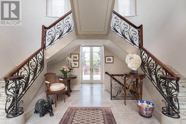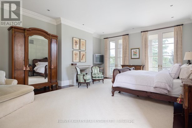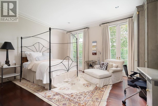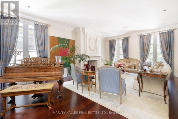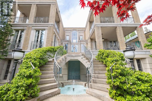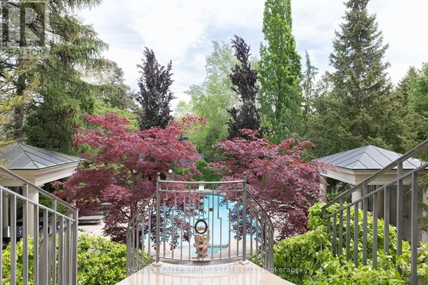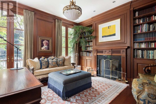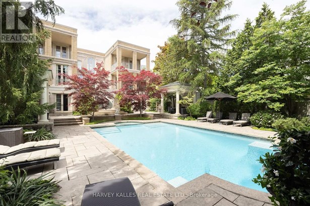 Majestically situated on one of Forest Hills most prestigious streets, this captivating residence masterfully designed by world-renowned architect Gordon Ridgely exemplifies timeless elegance and impeccable craftsmanship. Rooted in classical principles of symmetry, proportion, and balance, the home offers a remarkable blend of grandeur and comfort, ideal for both lavish entertaining and refined everyday living. A wealth of floor-to-ceiling windows, French doors, Juliette balconies, and multiple terraces bathe the interior in natural light, creating an airy, seamless flow throughout the living spaces. Exquisite finishes abound, including wide-plank mahogany hardwood floors and Indiana limestone flooring. The mahogany-paneled library, complete with a wood-burning marble fireplace, offers a warm and sophisticated retreat. A dramatic double staircase leads to the second level, where the serene primary suite features its own fireplace, a spacious walk-in dressing room, and walkout to a private covered terrace. The lower level is a haven for relaxation and recreation, boasting a full spa, entertainment and exercise rooms, and walkouts to beautifully landscaped gardens. Outdoor highlights include a charming gazebo, built-in BBQ, elegant fountain, and a stunning pool all shaded beneath a canopy of mature trees, providing an idyllic and private setting. An incomparable sense of privacy radiates timeless grace and charm, offering a sanctuary in the heart of the city. Perfectly positioned in an enviable location, this distinguished address places you within walking distance of Toronto's finest private and public schools, the boutiques and cafés of Forest Hill Village, premier recreational facilities, and just minutes from downtown and the financial district. (id:6370)