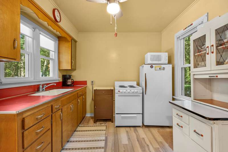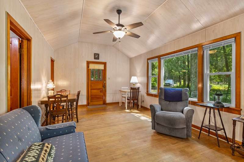 Welcome to the Timeless Charm of Buttermilk Cottage. Gracefully located moments from the sparkling shores of the Bay -- There's truly nothing quite like this beloved retreat! Classic cottage features Include: * White siding * Metal roof * Green screen door * Woodland backdrop Nestled w/ a tree-lined driveway & gently sloping hill, this cottage is perfectly designed for all yr. getaways. Relax & immerse yourself in the beauty of nature from your screened-in 3-season porch. Located on a tranquil dead-end road, near boat launches, state park, Restaurant, Sherwood Pt. Lighthouse, & Idlewild Golf Course. 2 bds, 1 bath, & a horseshoe-shaped kitchen. List of updates ready to share. Take a tour of Buttermilk Cottage today!