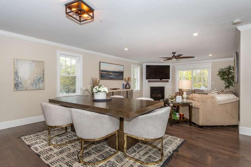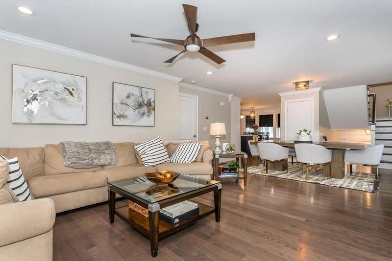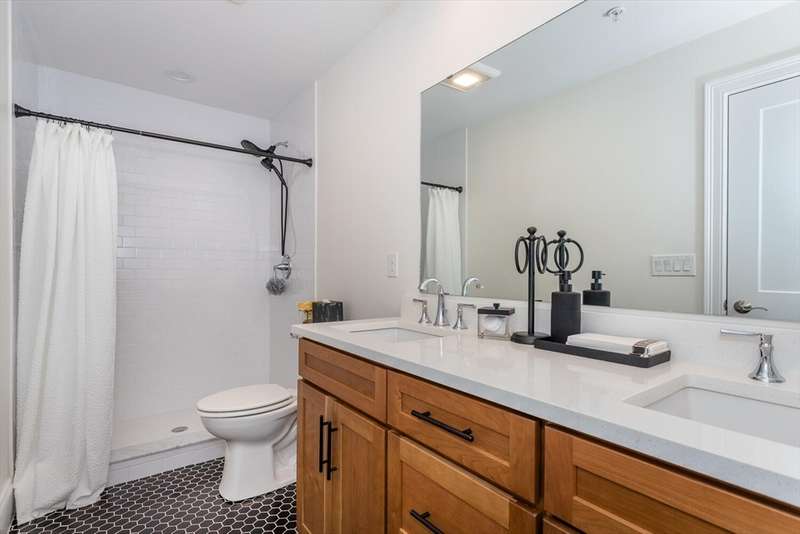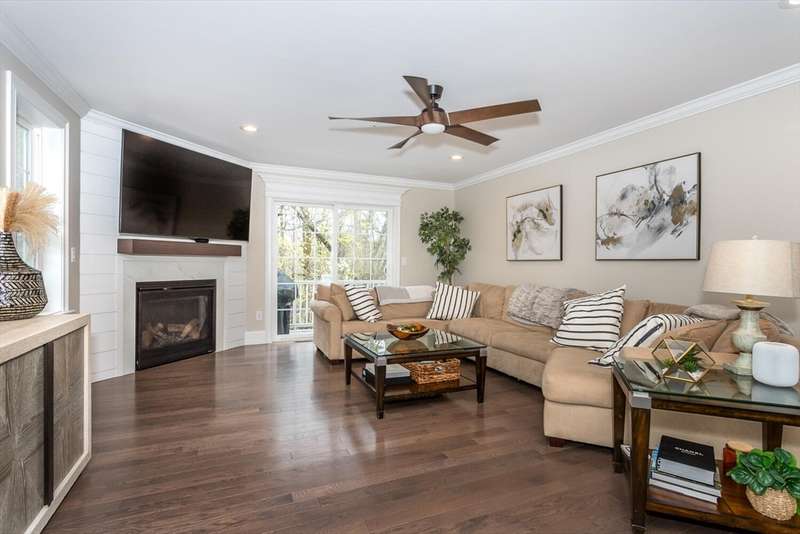 Enjoy the comfort & convenience of condo living but with the space of a single family home in this Stunning 3 Level End Unit Townhome at Washington Station. Conveniently located right in the heart of downtown Canton & boasting 3,000 square feet of luxury living space - The main floor features a gourmet kitchen w/ quartz countertops & high end appliances, an adjoining dining room that flows seamlessly into the family room w/ gas fireplace & slider to deck, a primary suite w/ a stylish full bath & walk in closet, a 1/2 bath & a laundry closet complete the 1st level. Upstairs offers a 2nd primary suite w/ dual walk in closets & a full en suite bath, plus an additional guest bedroom w/ its own private bath. The fully finished walk out lower level includes a large living area or potential 4th bedroom, another full bath, abundant closet space, & access to the 2 car attached garage complete with electric charger. Located just steps from shops, restaurants, & the commuter rail. Welcome Home!