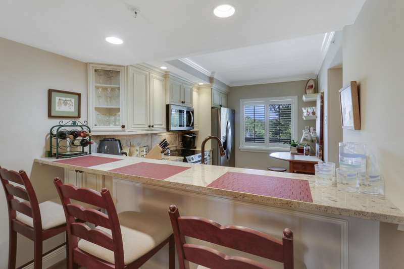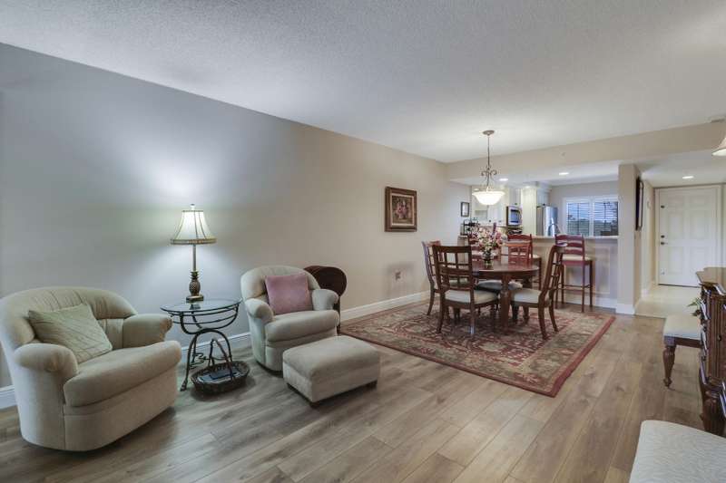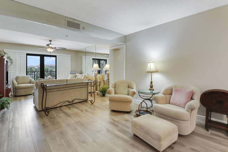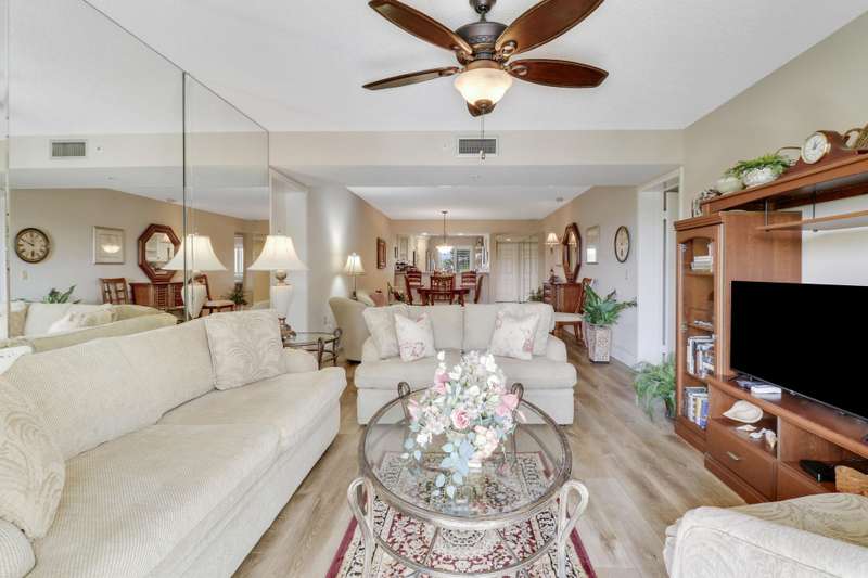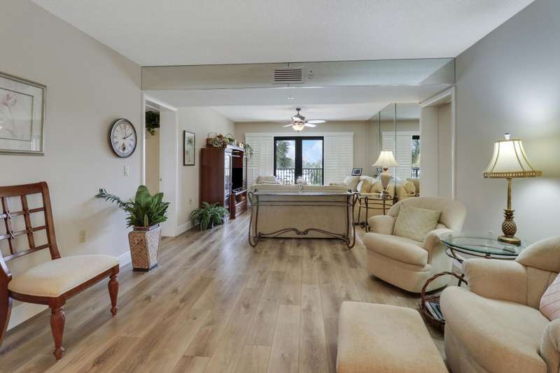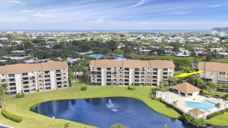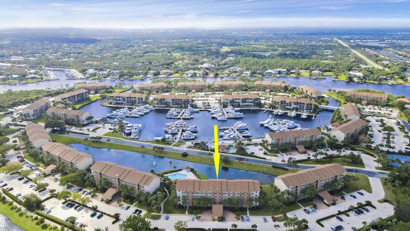 Come see this RARELY available CORNER UNIT condo in the Marina at the Bluffs! This 2 bedroom, 2 bathroom condo has AMAZING VIEWS of the pool, lake AND Marina. Hurricane impact windows and sliding glass doors. Recent updates include: luxury vinyl flooring in the main living areas & bedrooms and A/C replaced in 2021. Roof replaced in 2022. Condo fee includes exterior insurance, cable TV, Internet, water, sewer, and common areas. The extended outdoor balcony is an ideal spot to enjoy your morning coffee and beautiful sunsets in the evening! The Marina at the Bluffs offers residents 4 heated pools, tennis courts, and bocce ball. The Marina at the Bluffs is located less than a mile from some of the best beaches in South Florida, great restaurants, shopping, world-class golf courses and only 30