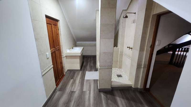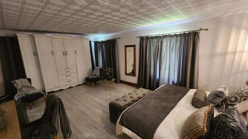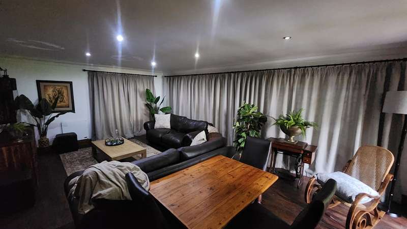 Welcome to this stunning 5-bedroom, 4-bathroom home nestled in the heart of Brits, North West. Designed for comfort and elegance, this spacious residence offers everything a modern family desires. As you step inside, you're greeted by three generous living areas, perfect for entertaining or relaxing. The home features four stylish bathrooms, with all but one bedroom boasting an en-suite for ultimate privacy. Air conditioning in most rooms ensures year-round comfort. The chef’s kitchen is complemented by a large pantry and a separate scullery, providing ample storage and workspace. It flows seamlessly into the living spaces, leading out to a massive balcony with breathtaking views. The covered patio overlooks a sparkling swimming pool and a large, well-maintained yard, perfect for outdoor gatherings. For added convenience, the property includes two double-door garages, providing ample parking space. Two Wendy houses serve as storage units for tools and other essentials. Additionally, domestic accommodation is available, making this home ideal for those seeking extra convenience. Located in a peaceful and sought-after area of Brits, North West, this home offers a luxurious lifestyle with all the space you need. Don't miss the opportunity to make this incredible property yours!