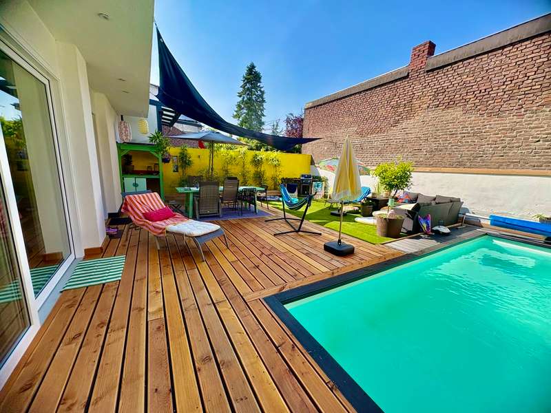 This exclusive apartment building combines generous living comfort with efficient use of space and offers a wide range of potential uses - both for owner-occupiers and investors. Built in 1900 and extensively modernized between 2020 and 2025, the property is in a completely renovated condition and boasts a high quality of furnishings. With a total living space of approx. 500 m², divided into 5 apartments and a commercial unit, the property opens up numerous design and usage options. The plot covers approx. 400 m² and offers ample outdoor space. The overall structure of the house is made up of five separate units, allowing individual usage concepts to be realized. Currently, approx. 290 m² are available for your own use - ideal for a large family or intergenerational living. The remaining approx. 210 m² are already rented out and generate attractive rental income. The eleven bedrooms and six modern bathrooms are functionally tailored to the respective units and offer flexible usage options. Bright, generously proportioned rooms ensure a harmonious living atmosphere. The well thought-out room layout enables comfortable living and pleasant privacy for all residents. Numerous details were modernized in the course of the extensive renovation in 2025: These include new windows in the extension that meet the latest energy standards, an efficient heating system, modern sanitary and electrical design and high-quality floor coverings. The furnishings are contemporary and impress with their durability and functionality. Modern bathrooms with high-quality fittings complete the offer. Gas heating has also been installed in the old building. However, there is the option of heating the old building additionally or alternatively via the existing biomass heating system. Particular attention was also paid to an attractive façade design and appealing communal areas. The spacious terrace area of the main unit and pool area invite you to linger. Practical storage rooms and utility areas are also available, which is particularly advantageous for the multi-party concept. An outstanding feature of this property is its well thought-out and future-oriented energy concept. The building is heated by a high-performance biomass heating system in combination with a modern heat pump - a solution that is not only particularly environmentally friendly, but also cost-efficient to maintain. Thanks to this combination, you benefit from significantly reduced operating costs and high energy efficiency, which is both ecologically and economically convincing. Another highlight is the exceptionally spacious garage, which goes far beyond conventional vehicle storage. With its impressive space, it offers a wide range of possible uses. Be it as a storage area, workshop, hobby room or even as a small warehouse. With its five units and the balanced ratio between owner-occupied and rented living space, the apartment building is an attractive property. The combination of historical charm, contemporary furnishings and the possibility of renting out a further approx. 210 sqm to third parties. See for yourself the many possibilities on site and arrange an individual viewing appointment. We look forward to your inquiry!