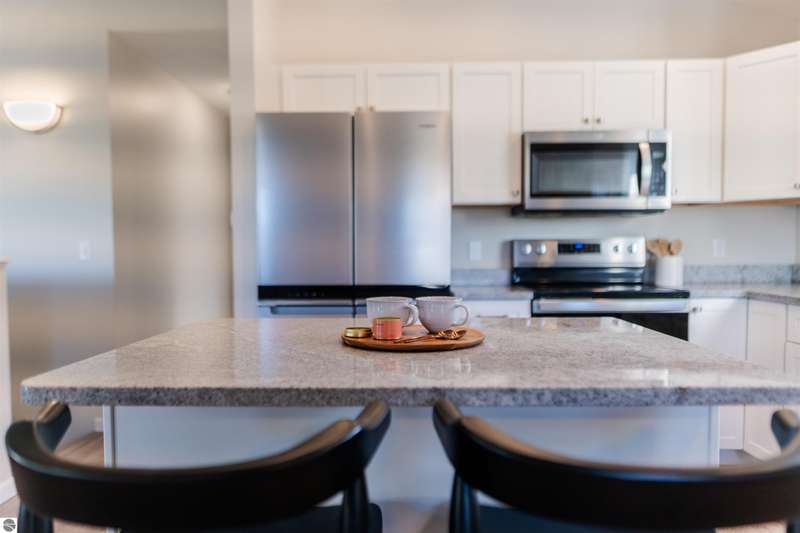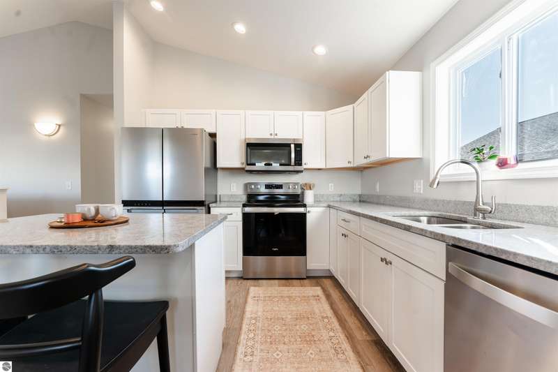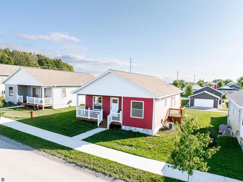 Move-in ready 3-bedroom, 2-bathroom home in the sought-after Traditions neighborhood is ready for you. Primary suite features a walk-in closet and full bath. The open main level offers abundant natural light, a granite kitchen with island and stainless steel appliances, a dining area, central air, and a welcoming covered front porch. The unfinished lower level has been started with framing & electrical for a bedroom, living room, and a future additional bath--ready for your finishing touches. Outside, enjoy the convenience of a detached two-car garage, irrigation, sidewalks, and even a community dog park. All this just 15 minutes from downtown Traverse City!