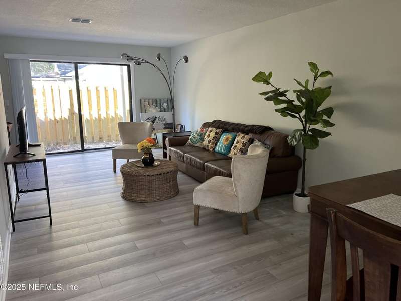 BRAND NEW from the roof to the studs to the flooring. One of five condo units in TEAKWOOD VILLAS building F, completely gutted, rebuilt, and ready for sale. Owner is willing to provide $2,000 appliance allowance. Reserved parking spot is just outside front door. Everything is built to code and permitted, including electric, plumbing, roof and HVAC. HOA dues are $375 and include landscape, roof, exterior pest control, trash and water and sewer. Similar sized units are renting for $1300 per month. Perfect for a first-time home buyer or an investor. TEAKWOOD VILLAS recently went through a community-wide transformation, including new paint, new fence, updated lighting, and will be tackling new mailboxes and downspouts for better irrigation in 2025.