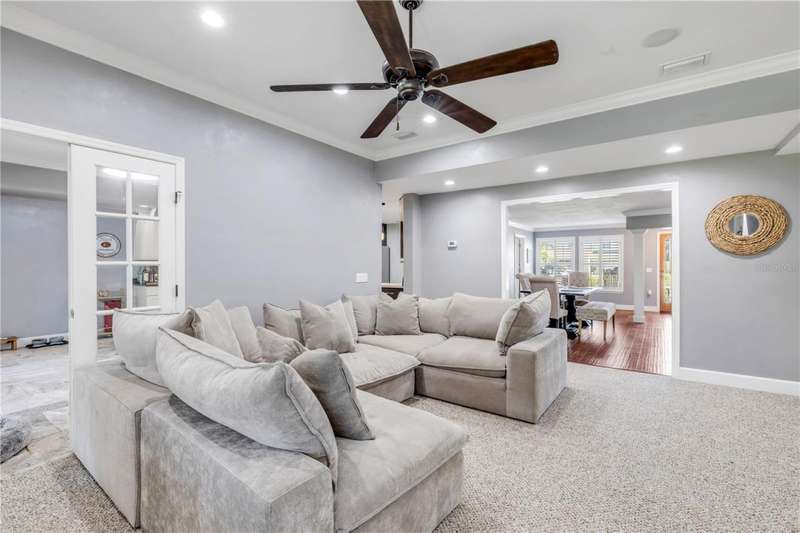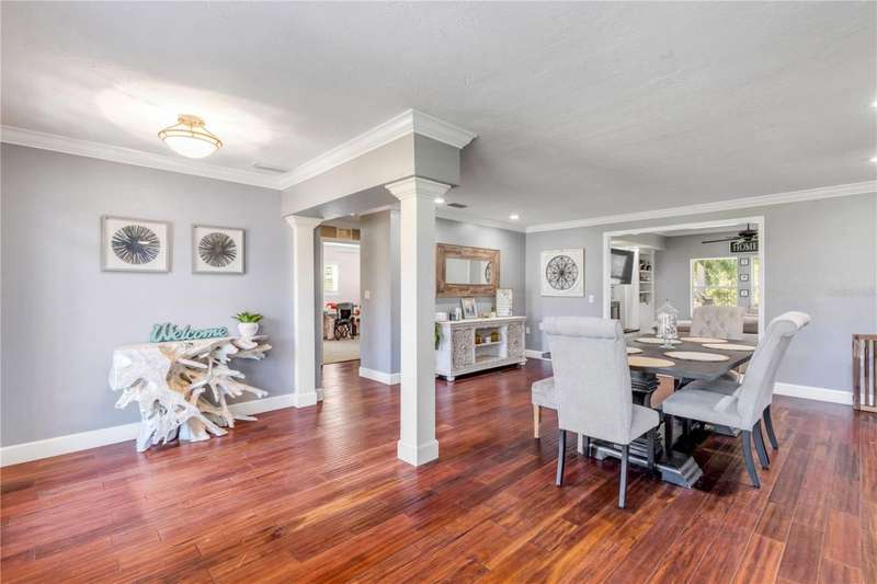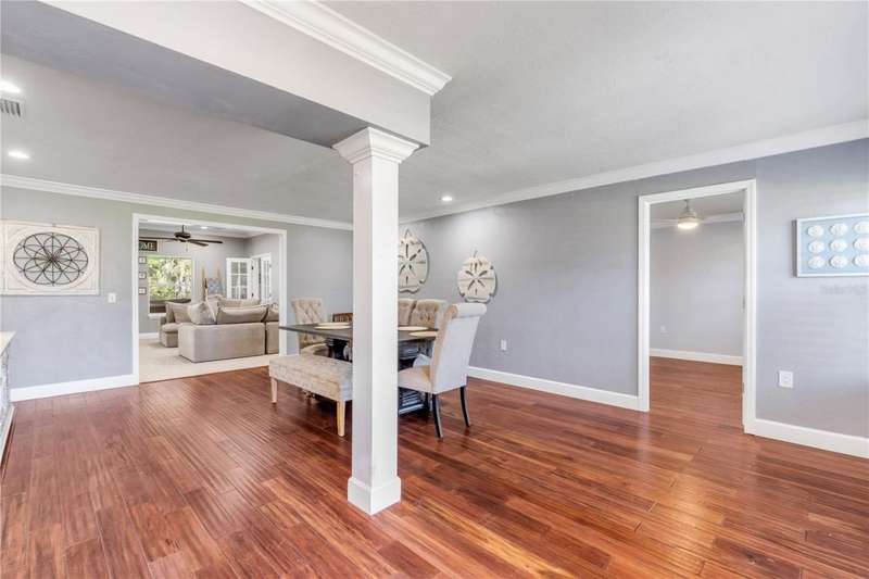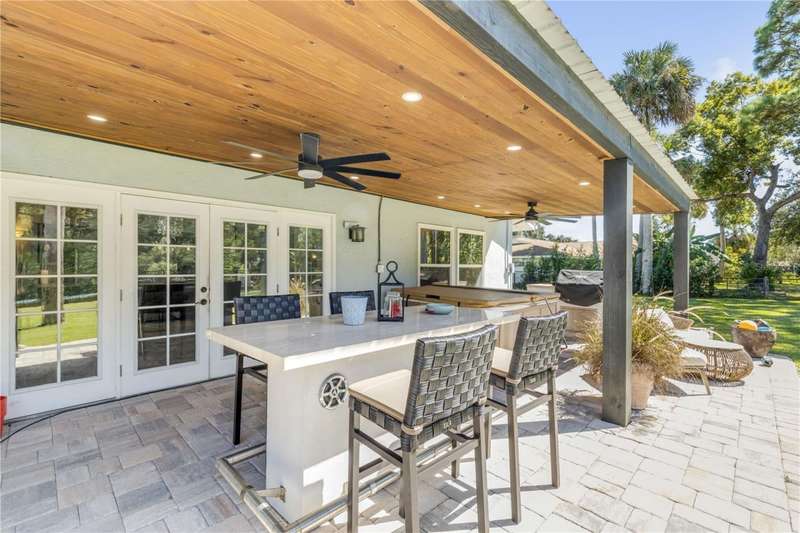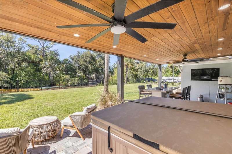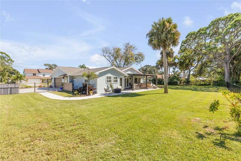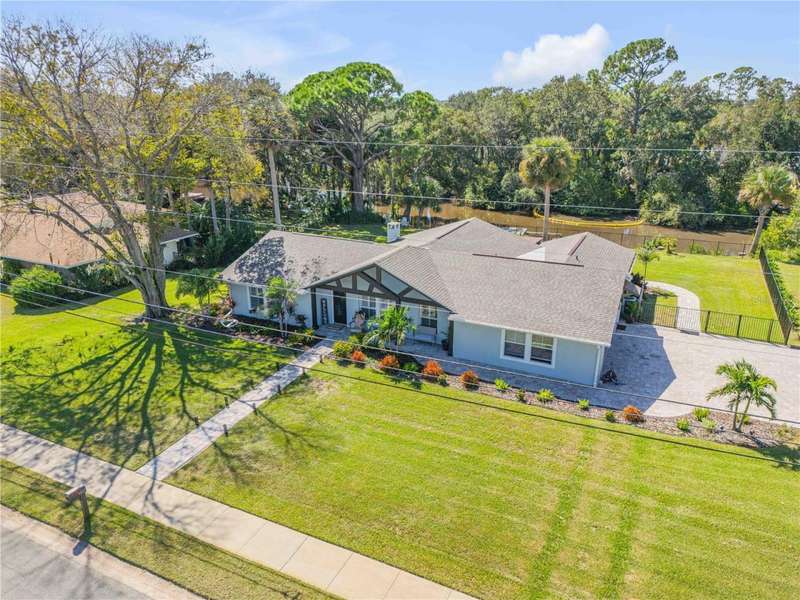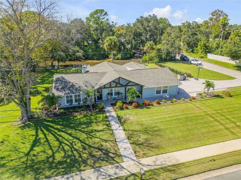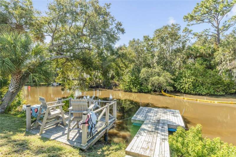 Canal-front gem is a rare find that promises the lifestyle you've been dreaming of. Nestled on a generous corner lot in one of New Smyrna's golf communities but with no HOA, this stunning 3-bedroom, 2-bath residence flows over 2,200 square feet of beautifully updated living space. From the moment you arrive, you'll be amazed by the comfortable layout and the sense of privacy that only a corner lot can offer. Step inside to discover a freshly renovated interior where modern finishes meet timeless charm-every detail thoughtfully curated to elevate your everyday experience. The brand-new roof combines with concrete construction for maximum efficiency and peace of mind. Seemingly made for entertaining, the entire home boasts welcoming spaces that include expansive living and dining areas along with a versatile flex room that easily functions as a 4th bedroom, office, playroom, or hobby space. The living room features a cozy wood-burning fireplace, while the kitchen offers an easy-to-work-in design with stainless steel appliances and ample counter space. The outdoor canal-front living space is nothing short of spectacular. Whether you're firing up the outdoor kitchen grill to host a weekend gathering, soaking in the hot tub (which stays!), or launching your kayak directly from your backyard into the canal for a sunset paddle, this home invites you to embrace Florida living at its finest. Enjoy endless adventures right from your doorstep - kayak, paddleboard, or take a small boat through the scenic waterways that lead to some of the best backwater fishing New Smyrna has to offer. With no HOA, you have the freedom to personalize your property without restrictions - add a sparkling pool, plant that garden, build a cozy fire pit, or simply enjoy the open space as it is. Just minutes from downtown, you'll find yourself within easy reach of vibrant dining, boutique shopping, and local events, all while enjoying the serenity of your private oasis. This is more than a home-it's a lifestyle. Whether you're searching for a spacious family haven or a peaceful retreat to unwind and recharge, this property delivers on every front. Opportunities like this are few and far between, so don't miss your chance to claim your corner of paradise.