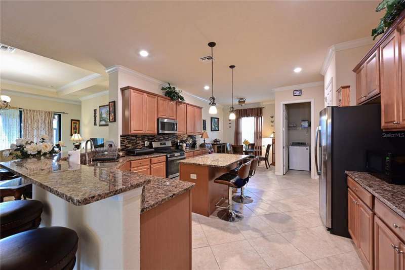 Discover luxury living in the picturesque, gated community of Bridgewater in Lakewood Ranch, Florida. This meticulously maintained home blends comfort, style, and the best of the Florida lifestyle.As you arrive, you'll be greeted by lush landscaping, a 3-car garage, and an elegant brick paver driveway and walkway. Step inside and you'll find an inviting open layout featuring 10' ceilings, tray ceilings, and crown molding throughout, setting the tone for timeless elegance.The gourmet kitchen is the heart of the home, complete with granite countertops, GE stainless steel appliances including a gas stove, solid wood cabinetry, and a spacious pantry. An eat-in breakfast area flows seamlessly into the living space, making it ideal for both everyday living and entertaining.From the living area, large sliding doors open onto a spacious screened lanai with serene water views-the perfect backdrop for morning coffee or evening gatherings.This split floor plan offers privacy and functionality. The primary suite is a true retreat with tray ceilings, crown molding, a massive walk-in closet, and a spa-like bathroom featuring dual vanities, a soaking tub, and a walk-in shower. Three additional bedrooms provide comfort for family or guests. The outside security camaras will stay with the property.Living in Bridgewater means enjoying maintenance-free landscaping in a community celebrated for its curb appeal and welcoming atmosphere. Residents enjoy parks, playgrounds, walking trails, and lakes, plus a vibrant social scene with clubs, outings, and events planned year-round.All of this is located in top-rated Lakewood Ranch school districts, just minutes from UTC Mall, outlet shopping, fine dining, championship golf courses, and some of the world's best beaches.This home is a must-see-schedule your private showing today! Occupancy Available March 2026