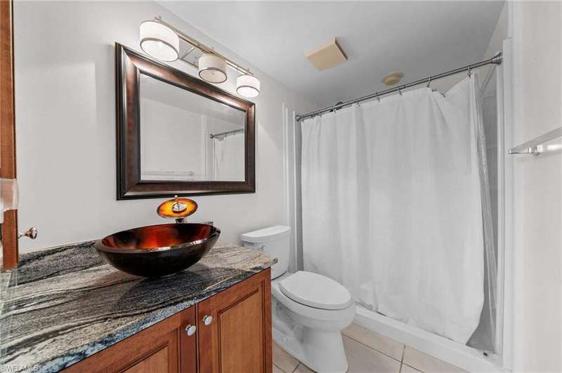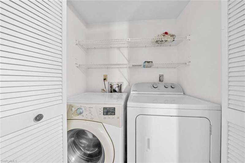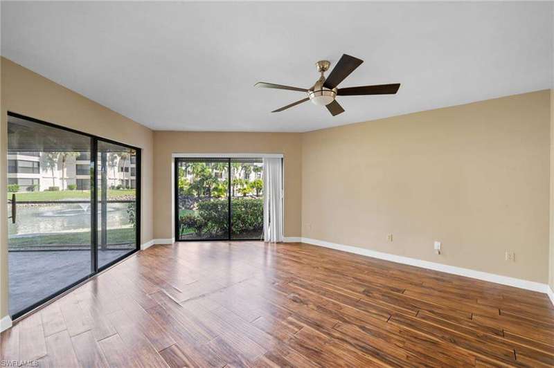 Welcome to this beautifully appointed first-floor unit featuring 2 bedrooms plus a den - perfect for a home office or easily convertible into a third bedroom. With granite countertops and laminate flooring throughout, this home offers both style and durability. The open-concept layout flows seamlessly into the master suite, which boasts dual sinks and a walk-in shower for a spa-like experience. Enjoy serene views of the water feature and direct access to the community pool, making relaxation effortless. Don't miss this opportunity for flexible living in a resort-style setting! Please note...the quarterly condo fees include Water, Sewer, Internet and Basic Cable as noted in the listing details.