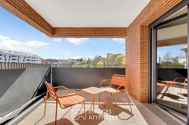 As soon as you pass the front door, a living room and a dining room with a surface area of approximately 26 sqm are accessible. At the corner, a contemporary kitchen completes the living areas. A bedroom, a separate bathroom and various built-in storage spaces complete this ensemble out of sight.