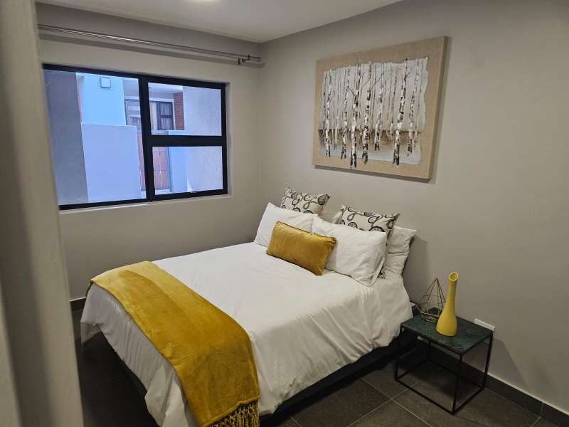 Discover the epitome of contemporary living in our brand new, meticulously crafted 2-bedroom, 1.5-bathroom ground floor apartment. Nestled in a secure and serene community, this residence is designed to elevate your lifestyle with a perfect blend of comfort, style, and security. Step into a world of sophistication where every detail has been carefully curated. Enjoy the elegance of high-end finishes throughout, complemented by extra high ceilings that create a sense of spaciousness and grandeur. Indulge in the seamless fusion of style and functionality with our open-plan lounge and kitchen. Granite tops and an under-counter oven add a touch of modern luxury to your culinary space, making it a joy to entertain and create memorable moments. Relax and unwind on your private patio, complete with a built-in braai for those delightful outdoor gatherings. A small garden space provides the perfect oasis for greenery enthusiasts or a tranquil retreat at the end of the day. Enjoy the perks of community living with access to a refreshing communal pool, play areas for the little ones, and a clubhouse equipped with braai facilities. It's the ideal setting for socializing and creating lasting memories with friends and family. Your peace of mind is our priority. The property is secured by a 2-meter electric perimeter fence, ensuring your privacy and safety. State-of-the-art security cameras in public areas, biometric access control, and a ground-floor unit design contribute to a secure and tranquil living environment. Don't miss the opportunity to own a slice of modern luxury in this ground-floor gem. Immerse yourself in a lifestyle defined by comfort, style, and security. Contact us now to schedule a viewing and make this dream apartment your new home