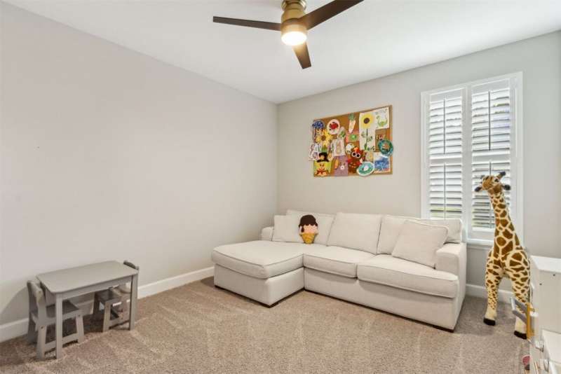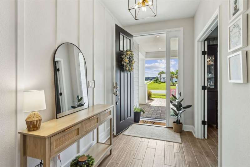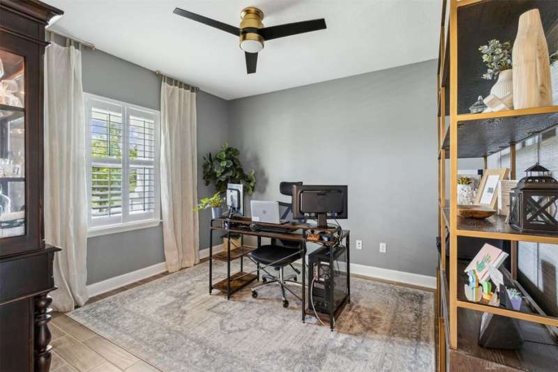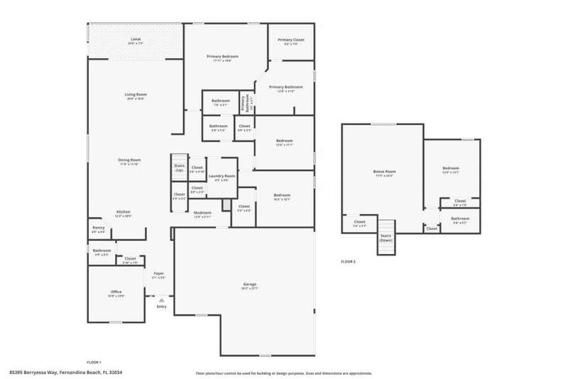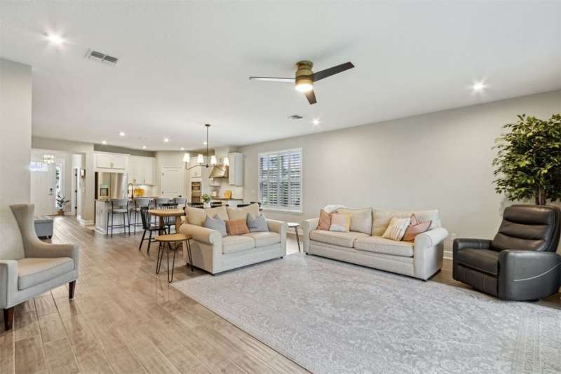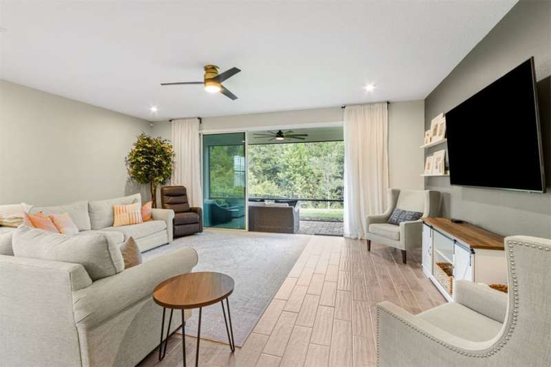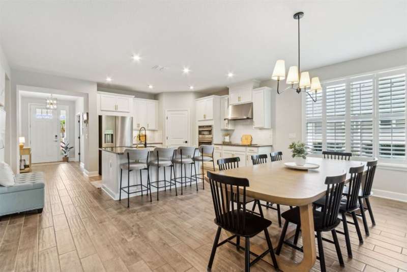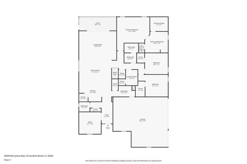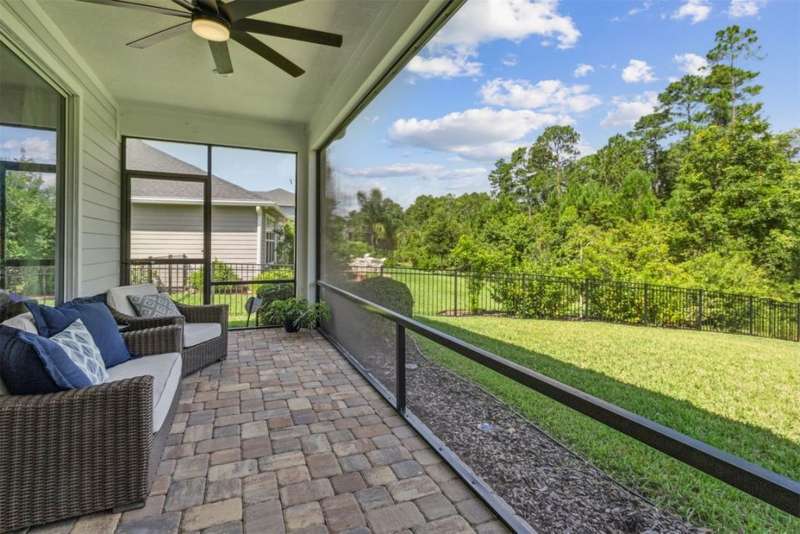 Welcome to this stunning, coastal-inspired residence nestled in the Amelia Walk community. Truly a move in ready gem featuring 4 bedrooms, 3.5 baths and offering 3,124 sq.ft. of thoughtfully designed living space and three-car garage. The open-concept family room flows seamlessly into the dining space and gourmet kitchen, featuring elegant wood-look tile flooring, plantation shutters, and recessed lighting for a bright and welcoming ambiance. The gourmet kitchen boasts a large island with granite countertops, soft close cabinets and drawers and stainless steel appliances. Perfect for hosting and entertaining. You'll love the private owner's suite located on the main level with a luxurious and bright 5-piece bath and large walk in closet with built-ins for maximizing storage. Two other guest bedrooms on the first floor with one featuring a large walk in closet with built ins, a full bath and additional half bath off of the kitchen for convenience for guests as well as a designated office space with french doors for privacy. Upstairs has a large bonus space and bedroom with full bath perfect for guests or the multi-generational family. Through the collapsible sliders in the living room you'll find a screened lanai overlooking the landscaped backyard that is fully irrigated via a sand point irrigation well and abuts preserve. The spacious garage has room for three cars and extra storage with epoxy flooring, water softener and is equipped for EV charging. Located within the sought-after Amelia Walk neighborhood, homeowners enjoy resort-style amenities including a huge pool, tennis and pickleball courts, fitness center and walking trails surrounded by leafy greenery?perfect for active families and entertaining guests.