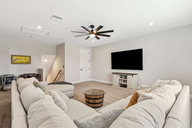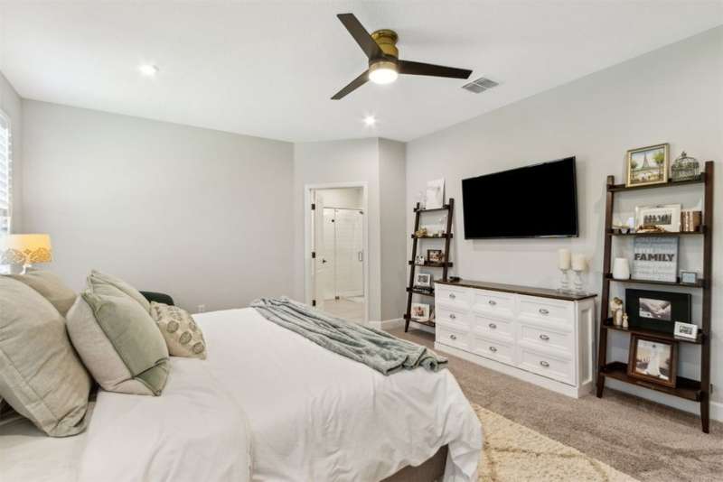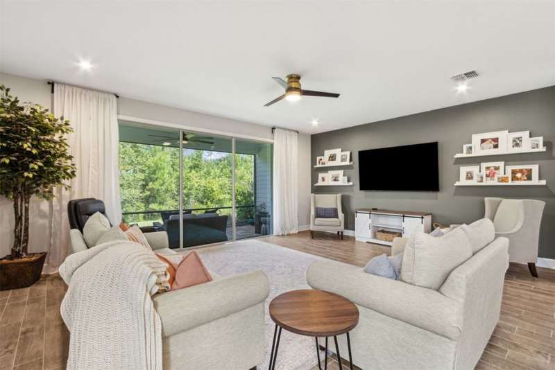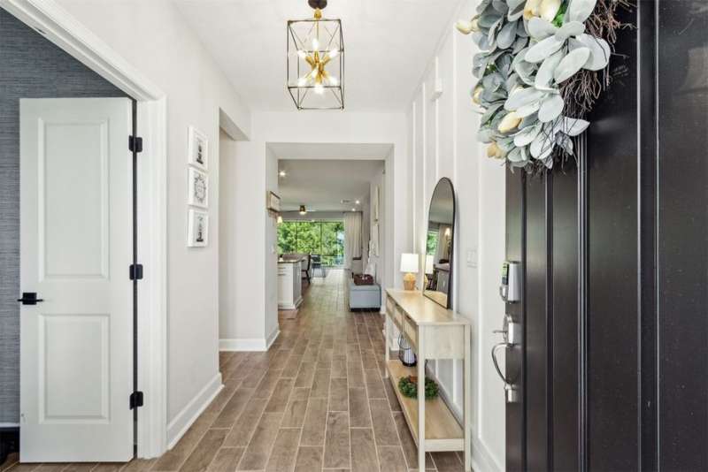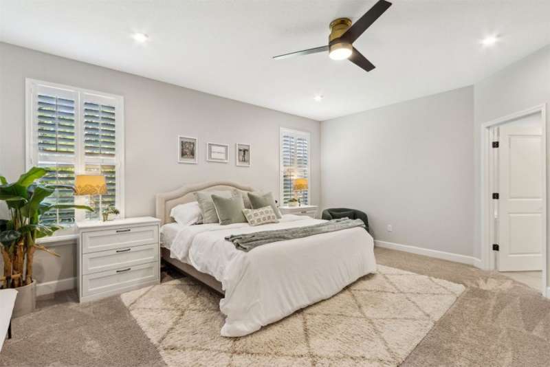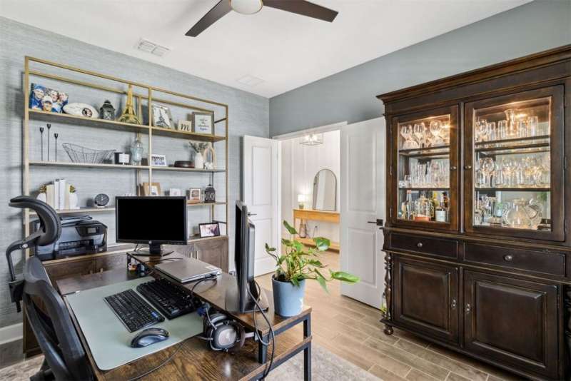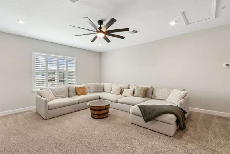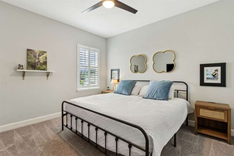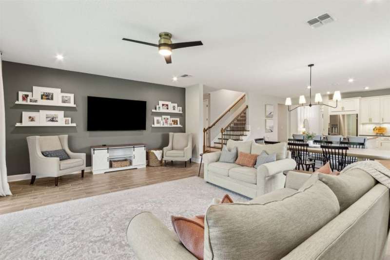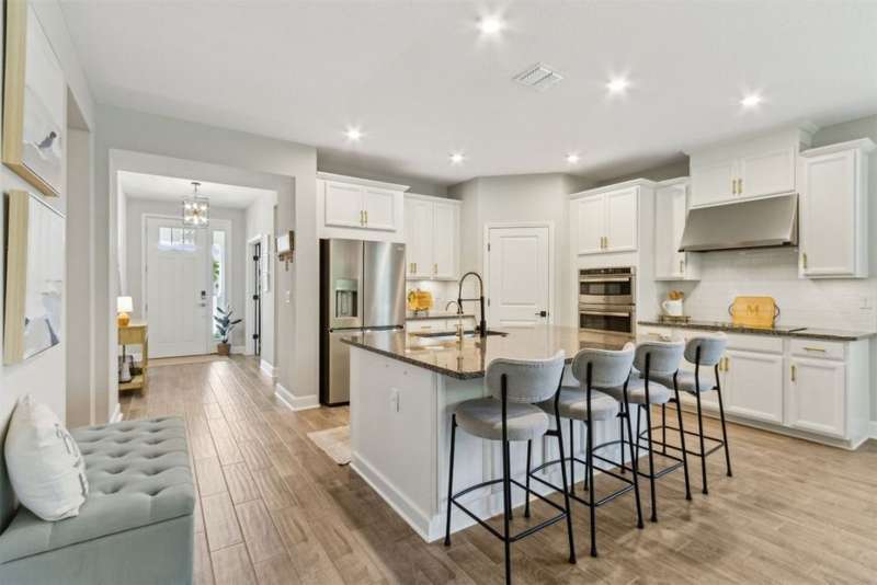 Welcome to this stunning, coastal-inspired residence nestled in the Amelia Walk community. Truly a move in ready gem featuring 4 bedrooms, 3.5 baths and offering 3,124 sq.ft. of thoughtfully designed living space and three-car garage. The open-concept family room flows seamlessly into the dining space and gourmet kitchen, featuring elegant wood-look tile flooring, plantation shutters, and recessed lighting for a bright and welcoming ambiance. The gourmet kitchen boasts a large island with granite countertops, soft close cabinets and drawers and stainless steel appliances. Perfect for hosting and entertaining. You'll love the private owner's suite located on the main level with a luxurious and bright 5-piece bath and large walk in closet with built-ins for maximizing storage. Two other guest bedrooms on the first floor with one featuring a large walk in closet with built ins, a full bath and additional half bath off of the kitchen for convenience for guests as well as a designated office space with french doors for privacy. Upstairs has a large bonus space and bedroom with full bath perfect for guests or the multi-generational family. Through the collapsible sliders in the living room you'll find a screened lanai overlooking the landscaped backyard that is fully irrigated via a sand point irrigation well and abuts preserve. The spacious garage has room for three cars and extra storage with epoxy flooring, water softener and is equipped for EV charging. Located within the sought-after Amelia Walk neighborhood, homeowners enjoy resort-style amenities including a huge pool, tennis and pickleball courts, fitness center and walking trails surrounded by leafy greenery?perfect for active families and entertaining guests.