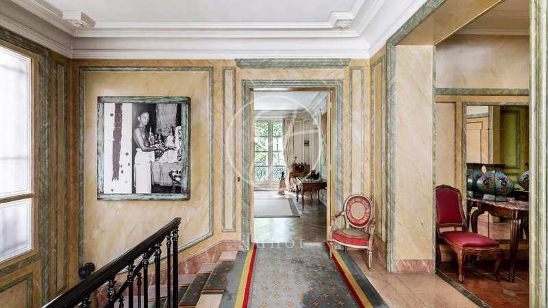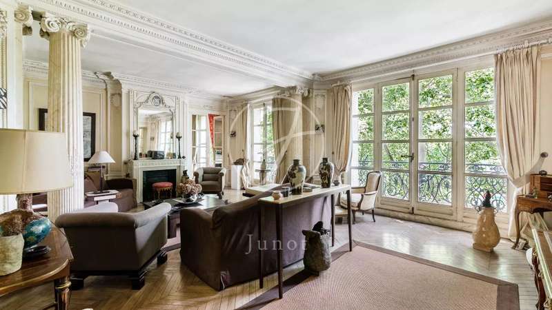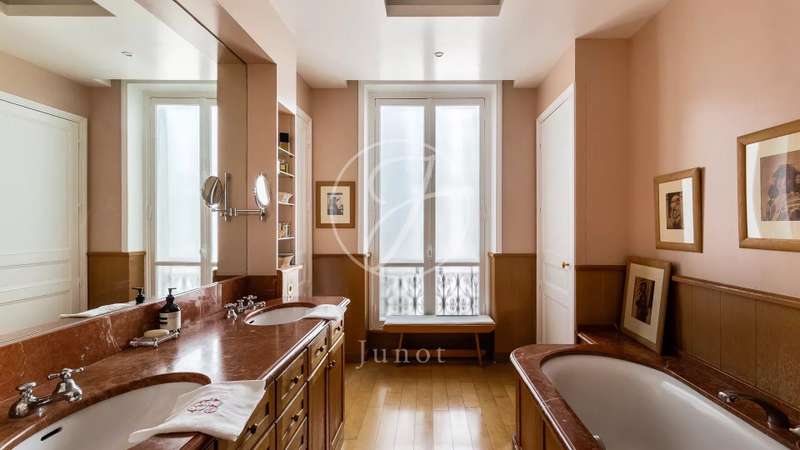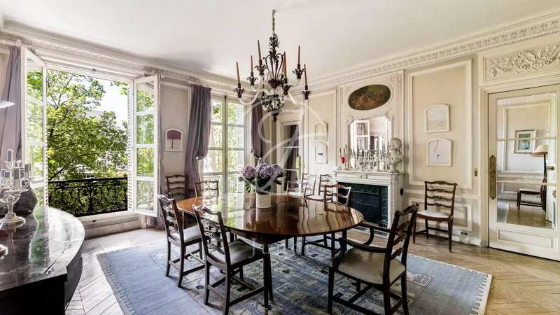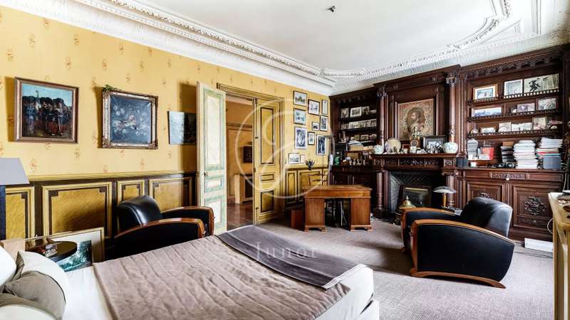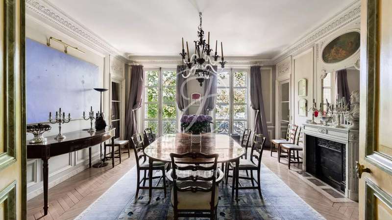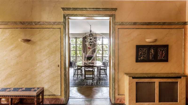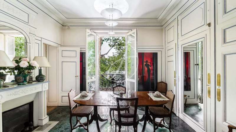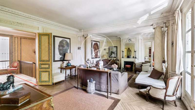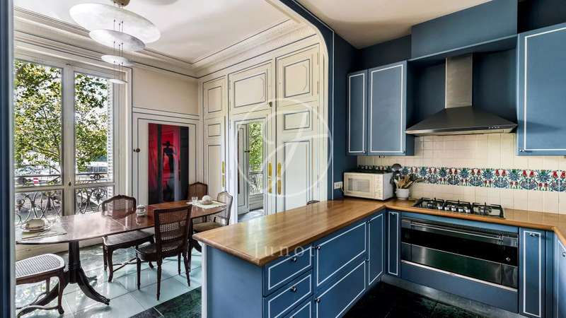 Ideally located between the Seine and the Marais, in the heart of a private mansion house. A reception flat with a floor surface area of 433.94sqm (397.86sqm Carrez), featuring a majestic entrance via a grand staircase that opens onto an entrance gallery with a glass roof, a succession of four reception rooms with unique views over the Seine, the bridges of Paris and the Hôtel Lambert. There is a boudoir, a double lounge with a fireplace and columns, a library, a splendid dining room and a galley kitchen. The second part of the flat extends around the courtyard of honour. It is dedicated to family life, with a master suite complete with bathroom and dressing room, three large bedrooms with two bathrooms, three toilets, a laundry room, a second kitchen with pantry, a service entrance and a private staircase leading to a garage. This incomparable property benefits from the charm of the grande époque with its numerous marble fireplaces, medallions, cartouches, stained glass windows and mouldings.
