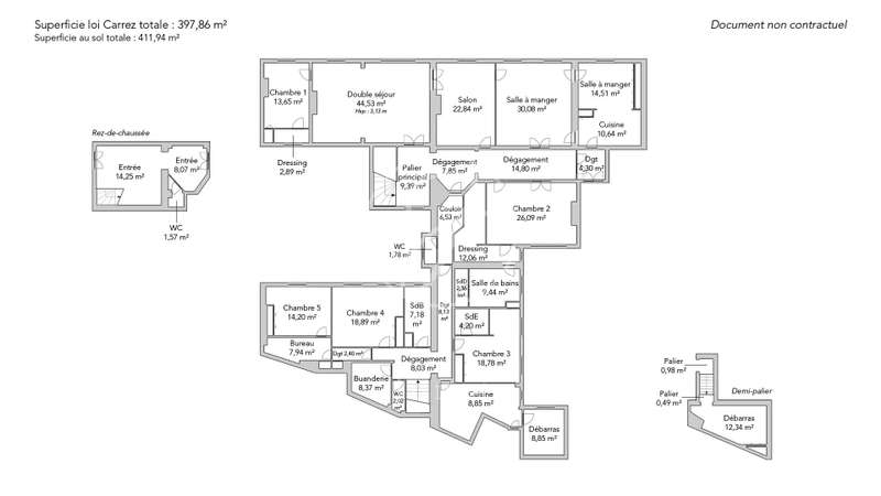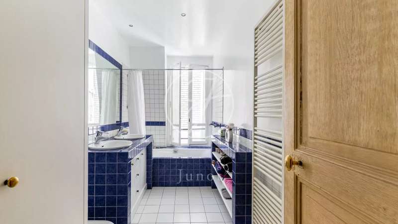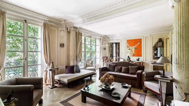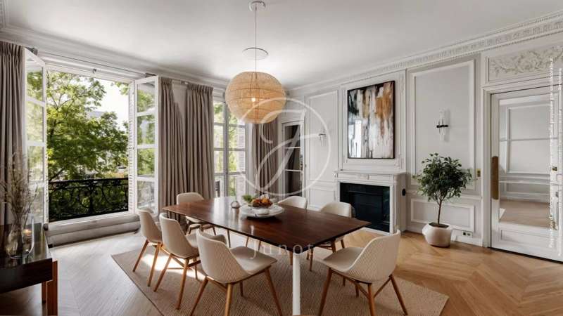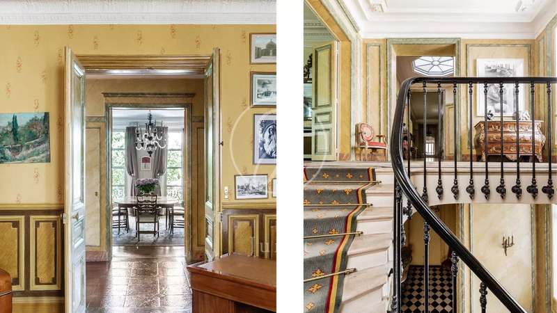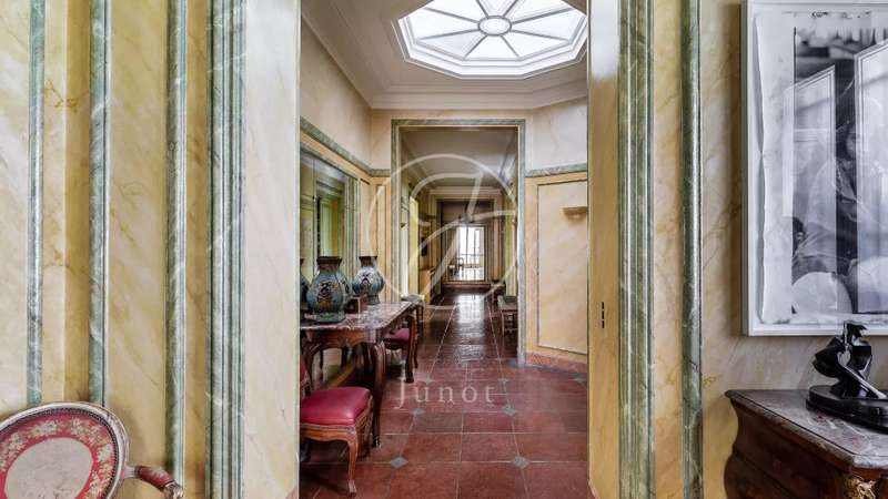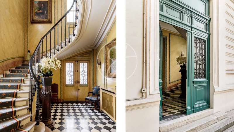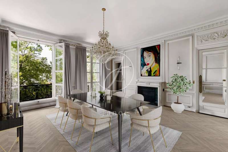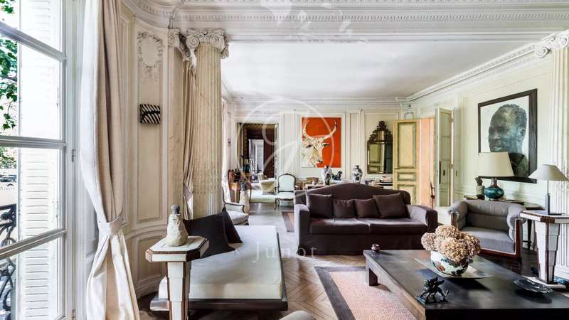 Ideally located between the Seine and the Marais, in the heart of a private mansion house. A reception flat with a floor surface area of 433.94sqm (397.86sqm Carrez), featuring a majestic entrance via a grand staircase that opens onto an entrance gallery with a glass roof, a succession of four reception rooms with unique views over the Seine, the bridges of Paris and the Hôtel Lambert. There is a boudoir, a double lounge with a fireplace and columns, a library, a splendid dining room and a galley kitchen. The second part of the flat extends around the courtyard of honour. It is dedicated to family life, with a master suite complete with bathroom and dressing room, three large bedrooms with two bathrooms, three toilets, a laundry room, a second kitchen with pantry, a service entrance and a private staircase leading to a garage. This incomparable property benefits from the charm of the grande époque with its numerous marble fireplaces, medallions, cartouches, stained glass windows and mouldings.