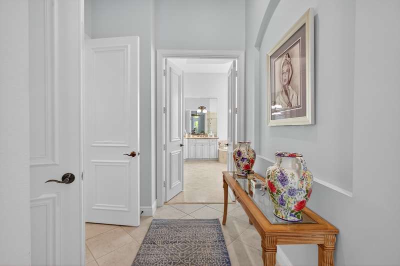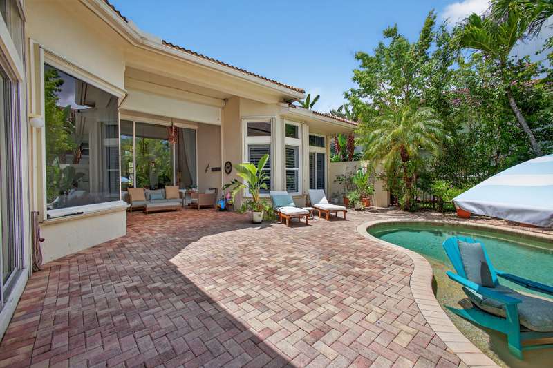 Your serene garden home awaits. Fabulous value for a single family home located in the well located and highly sought after country club community of Frenchman's Reserve. This lovely inviting 3 bedroom + den/office and 4 full bath Casa Bendita model home features tranquil long lake & course view and is ready to become your very own. Completed with lovely signature finishes throughout this spectacular residence has been lightly lived in and lovingly maintained. The beautiful newly completed inviting pavered drive/entryway opens to wonderful pool, lake & course views all highlighted by captivating tropical landscaping. Delight in the scenic garden views from the primary suite and throughout the main living spaces. An absolutely perfect home for family gatherings and guests.