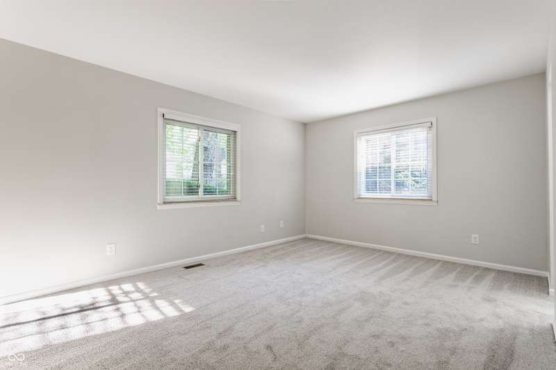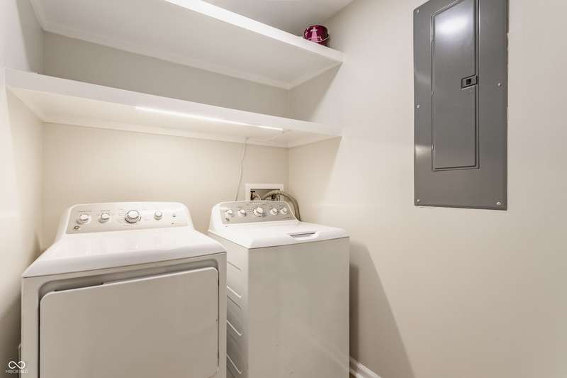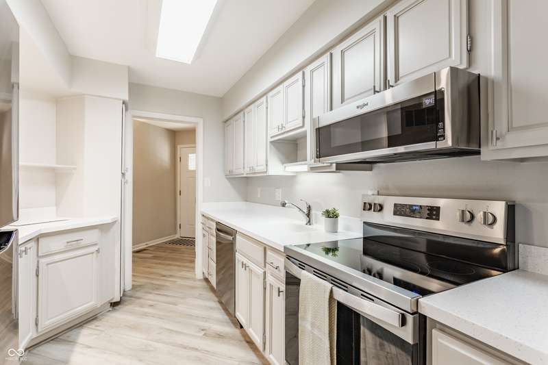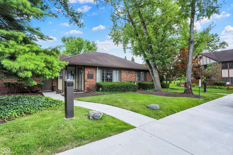 Located west of the Indianapolis Museum of Art, this condominium offers a unique opportunity to own property in desirable, gated Knoll Condominiums. With 1352 square feet of living area, this condominium provides easy main floor living with street level access making it a popular choice. Freshly updated with lovely views of mature trees w/expansive patio & deck. Extensive updates include: new 200-amp main breaker panel, new sconces & light fixtures in halls, walk-in closets, laundry room & entry. Windows and patio doors replaced. New toilet in hall bath. Water heater replaced 2023. New front door with new storm door. New stove, refrigerator, microwave & dishwasher, new luxury vinyl plank flooring throughout. New kitchen countertops & sink. Newly refinished cabinets in kitchen & bathrooms. New sinks and faucets in bathrooms. New door handles & hinges throughout home. New shut-off valves in bathroom & kitchen. HVAC serviced bi-annually by Williams Comfort Air. This modestly priced complex which pays for water & sewer is conveniently located close to Butler U, Marion U & Broad Ripple while having the benefits of a suburban setting.