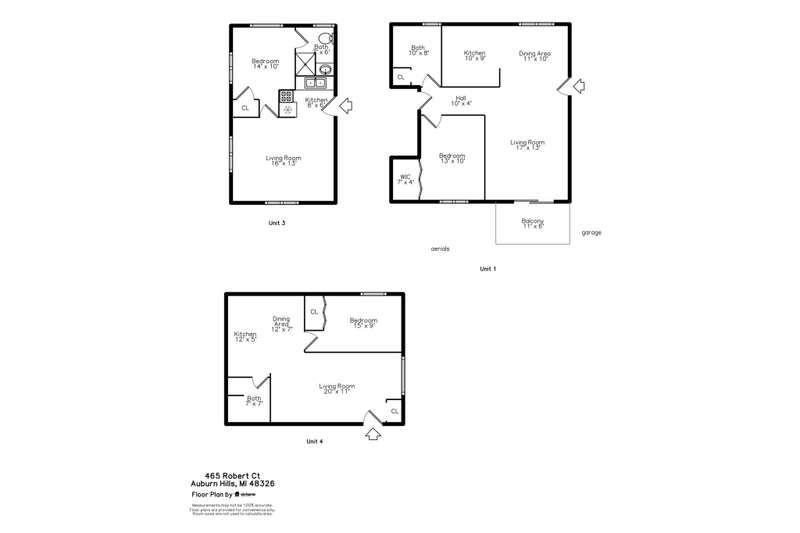Welcome to 456 Robert Ct, a meticulously maintained four-unit property situated in the Churchill area of Auburn Hills. Constructed in 1966, this brick ranch encompasses 2,536 sq ft on a 0.46-acre lot. The layout includes two lower units and two upper units, with one featuring a private entry and a balcony. Each unit is equipped with a full bathroom, living and dining area, and kitchen complete with appliances. The property boasts a circular driveway providing off-street parking, complemented by a 1.5-car garage for additional storage convenience. Its proximity to Oakland Community College, Downtown Auburn Hills, and UWMs campus creates a prime investment opportunity for owners seeking dependable income within a stable suburban setting. Please note that tenant occupied. The property is being sold in its current condition.