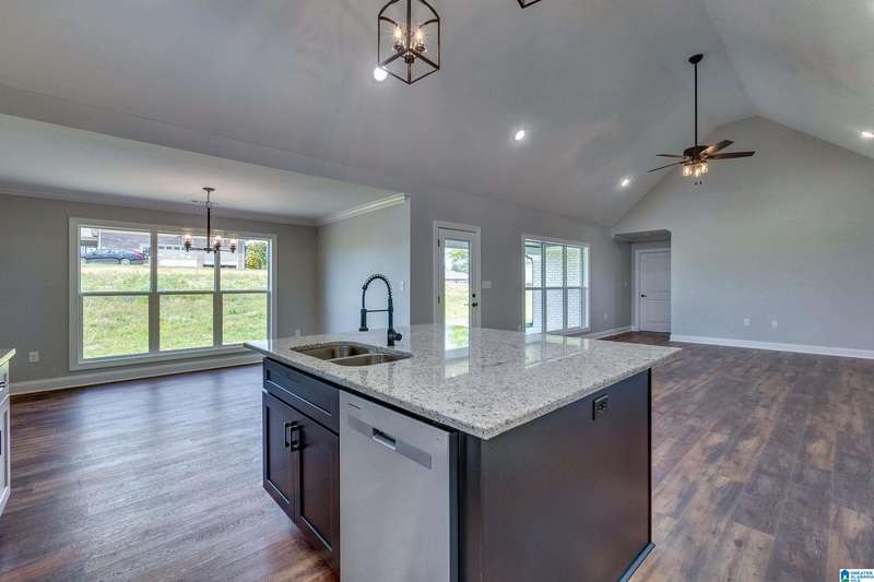 The Crest Subdivision - 2,121 sq ft plus a 2 car garage. Sits on .73 +/- of an acre. Full brick and stacked stone. Walking into the spacious foyer you are lead into the great room with soaring vaulted ceilings open to the large dining area and kitchen w/smooth top stove, microwave, dishwasher, stainless appliances, over sized island and solid surface counter tops. All overlooking the back yard with a large covered porch. The master is spacious w/vaulted ceilings, the master bath w/double shower, garden tub, double sinks, oversized master closet/dressing room, any girls dream. Master can be accessed from the great room & has a private entrance from the garage through the mud room and laundry room. Entering from the spacious 2 car garage is a mudroom with bench, hangers and cubby holes for storage. 3 other bedrooms & a full bath separate from the master. 2 Car garage entry/side. Carpet in bedrooms only the other flooring hard tile & vinyl plank. Shown by appt only to preapproved buyers.