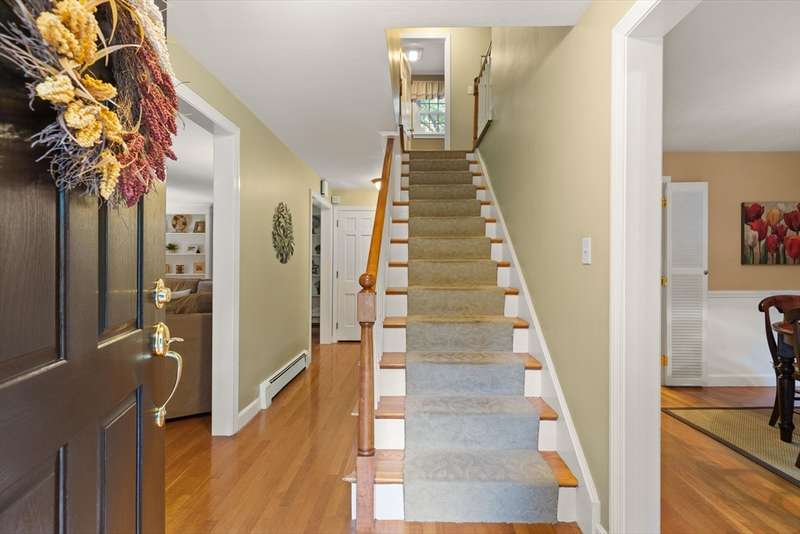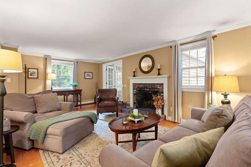This picture-perfect colonial home is nestled in a peaceful cul-de-sac and exudes maximum curb appeal! Meticulously maintained and updated, this residence features upgraded windows and doors, a brand-new heating system, central air conditioning, and much more! The grand vaulted family room serves as the heart of the home where a wood-burning fireplace acts as a warm focal point, illuminated by oversized picture windows for abundant natural light. This room also provides easy access to two beautiful outdoor patios, perfect for dining al fresco, sipping morning coffee, or entertaining guests. The yard is private, and expansive, offering hours of enjoyment and play. A cozy front-to-back living room features French doors that lead to a bright and cheerful home office or playroom. The second level is home to 4 bedrooms and a full bath, while the lower level boasts a great bonus room, ample storage, and a large unfinished space with great finish potential. This home is truly a gem!