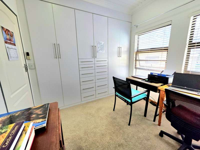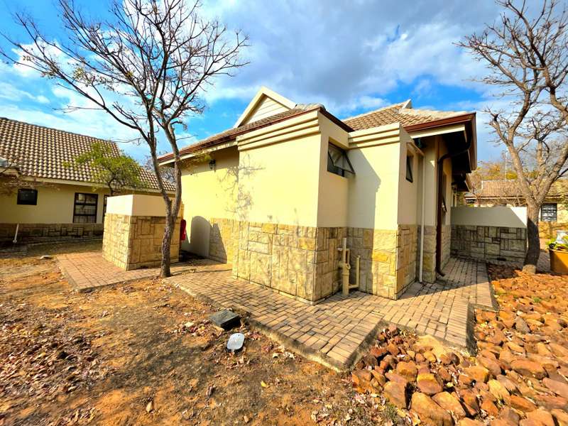 3 Bedroom Retirement House for Sale in Koro Creek Golf Estate, Modimolle. This extremely well-maintained sectional title home is perfectly positioned in Koro Ridge, right next to a tranquil greenbelt within the popular Koro Creek Golf Estate. The house is equipped with a quality 9kVA solar system and 10 solar panels, ensuring peace of mind and energy efficiency. Step inside to a welcoming sun patio that overlooks the greenbelt where free-roaming game often pass by. The patio opens up with stacker doors, seamlessly blending indoor and outdoor living. From here, you enter the spacious open-plan living area, complete with air conditioning and a ceiling fan for year-round comfort. The thoughtfully designed kitchen features a gas hob and electric oven, making meal preparation a pleasure. Down the passage are three bedrooms. The two guest bedrooms each have built-in cupboards and ceiling fans, and share a neat guest bathroom. The main bedroom offers air conditioning, a ceiling fan, ample built-in cupboards and a private en-suite bathroom. The double garage comes with automatic roll-up doors and includes a convenient laundry area. Backup water tank and pressure pump installed. Retire in style and security in the beautiful Koro Ridge. For more information or to book your private viewing, get in touch today.