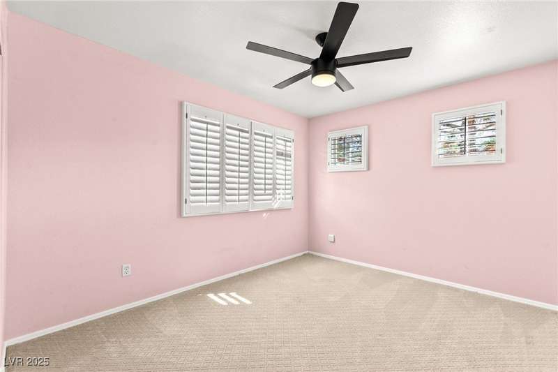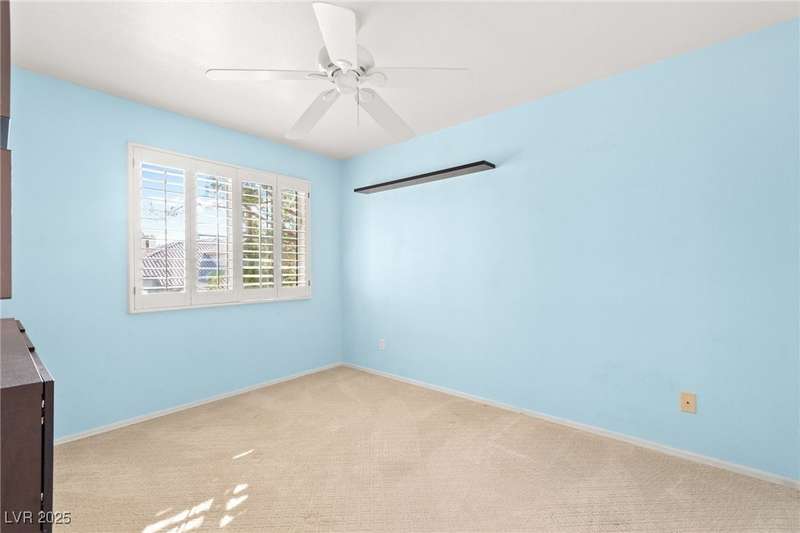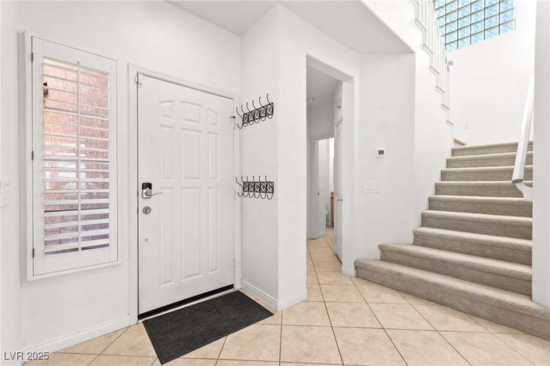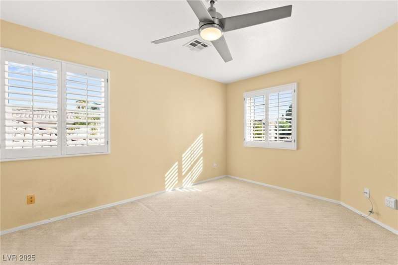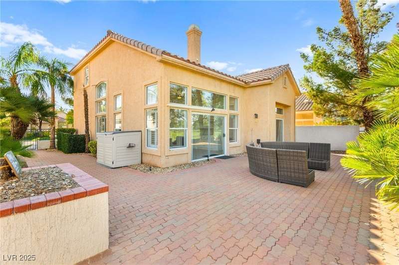 Located in a gated golf course community overlooking TPC, this charming 2 story home offers 4 spacious bedrooms, 3 full bathrooms, and a 2-car garage. Step inside to discover soaring ceilings, an abundance of natural light, and a well-appointed kitchen with granite countertops and stainless steel appliances. The open-concept layout flows effortlessly into the living & dining areas, perfect for entertaining. The primary suite is conveniently located downstairs and features a luxurious ensuite bath with soaking tub, walk-in shower, & dual vanities. Upstairs, you'll find additional bedrooms ideal for family, guests, or a home office. Enjoy evening sunsets from the backyard with sweeping views of the golf course. Additional highlights include/ cozy fireplace, custom shutters throughout, and tranquil courtyard entry. With golf course frontage & access to nearby shopping, dining, and Summerlin Pkwy, this home blends comfort, style, & convenience in one of Las Vegas’ most desirable locations.