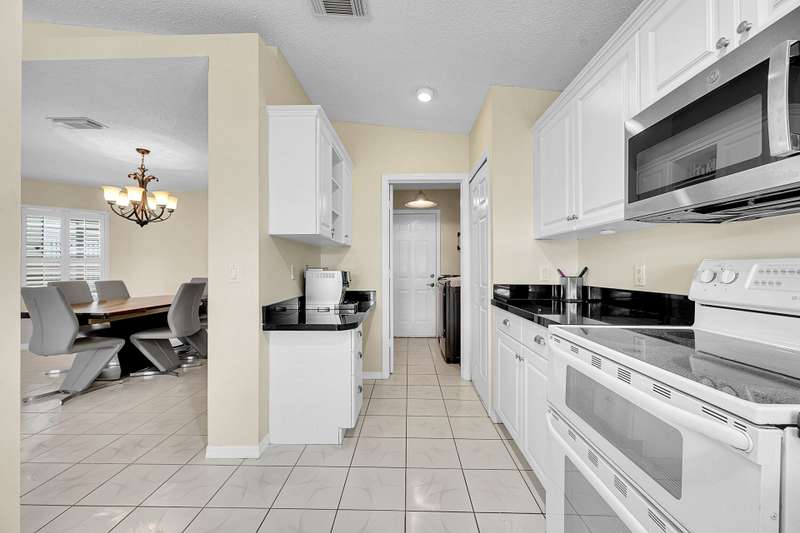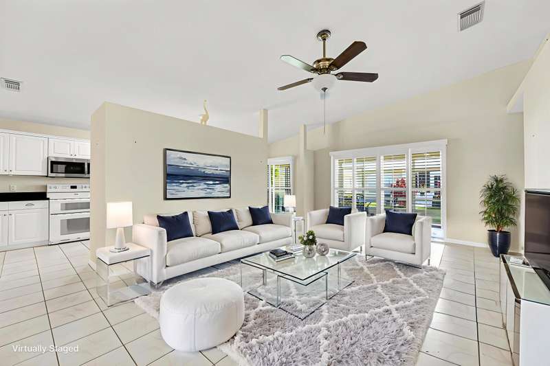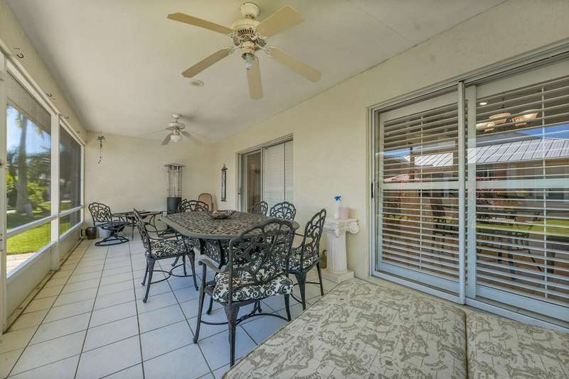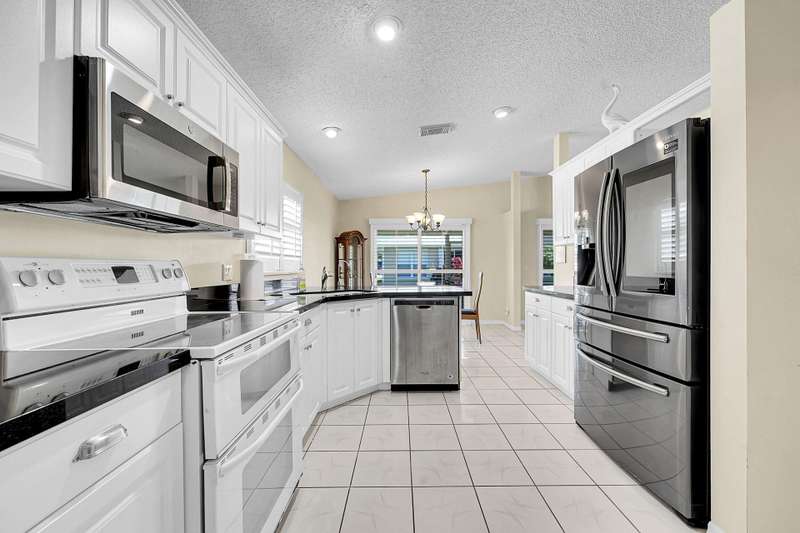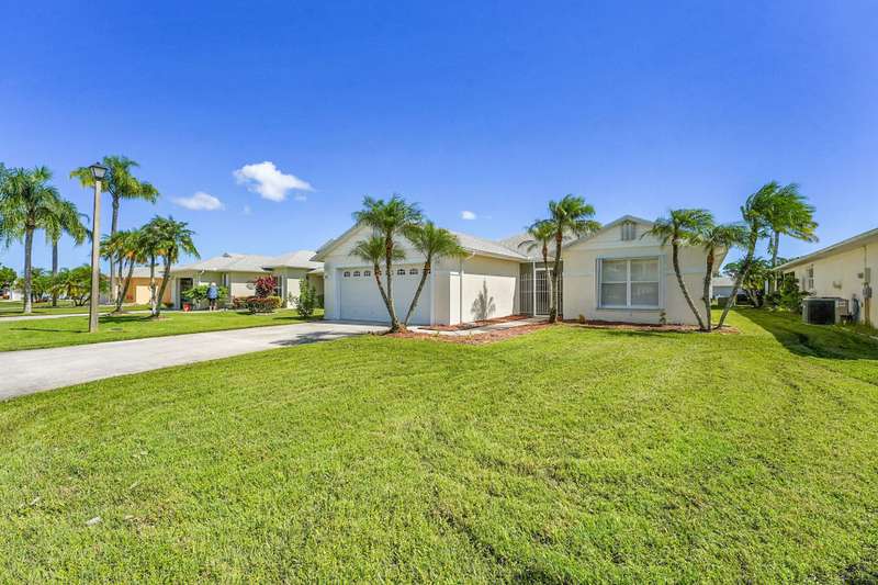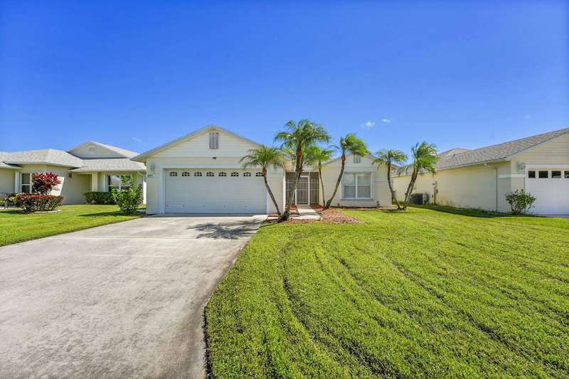 Dont miss this beautifully updated 3BR/2BA CBS home in the sought-after 55+ gated community of Palm Grove. Featuring a bright, open floor plan with tiled floors throughout, this single-level home offers a spacious kitchen with granite countertops, lots of storage & SS smart fridge. The primary suite includes a walk-in closet and ensuite bath. Enjoy outdoor living on the large screened patio. Complete with a 2-car garage and indoor laundry room with sink. Accordion shutters all around including the entire exterior of the screened patio for added peace of mind. Enjoy 24/7 security, pool, tennis, pickleball, bocce, fitness center, clubhouse, social events, and more. Only minutes from shopping, dining, and beaches.