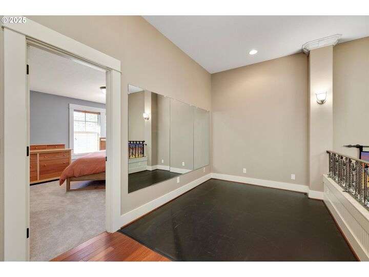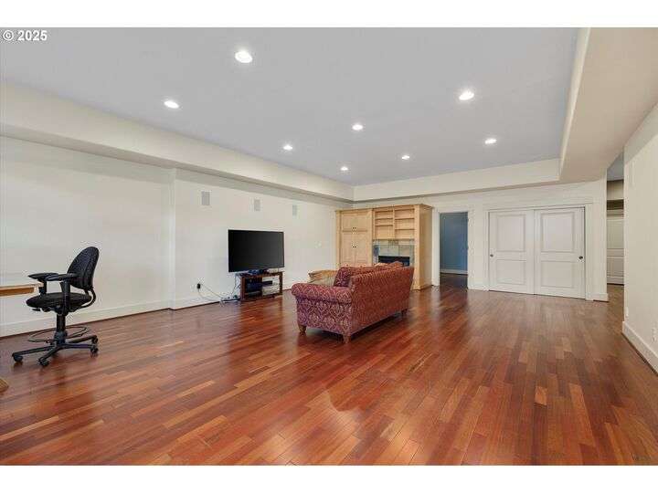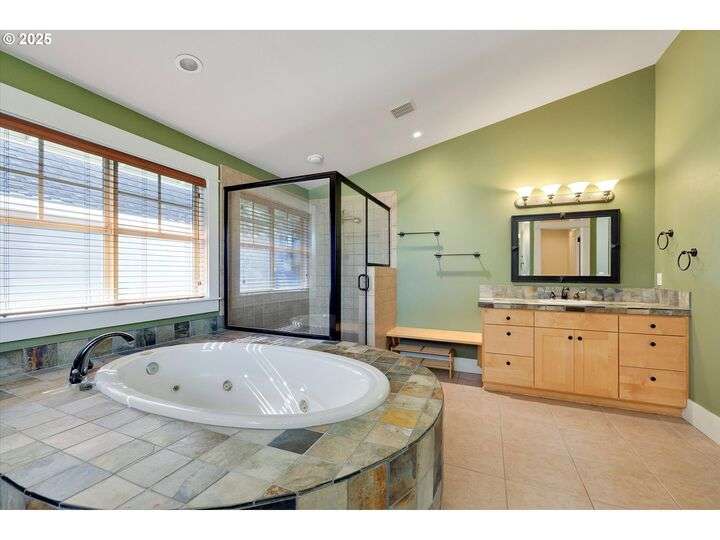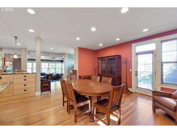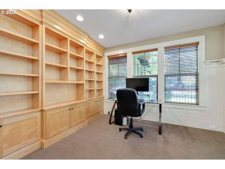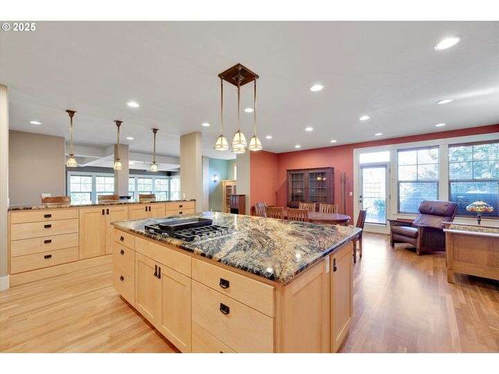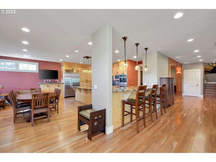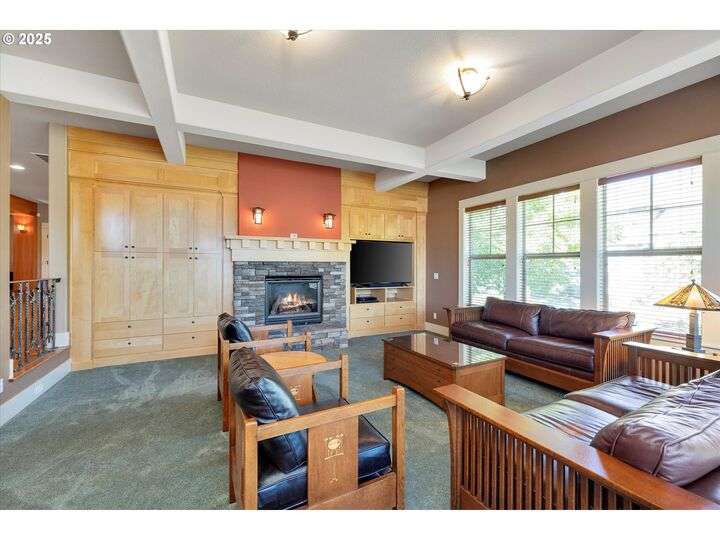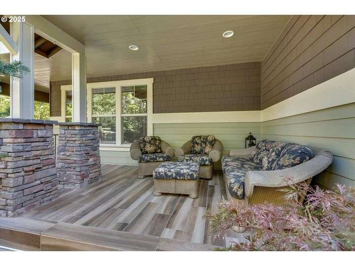 Discover an exceptional retreat where the rustic warmth of a mountain lodge meets the enduring craftsmanship of classic Northwest design. Nestled in the coveted Barrington Heights community of West Linn, this custom-built home offers a rare balance of refined luxury and natural beauty. Step through the entry to be welcomed by soaring vaulted ceilings framed with massive timber beams and detailed tongue-and-groove finishes that showcase true artisan workmanship. The open-concept great room blends seamlessly with a chef’s kitchen, complete with professional-grade stainless steel appliances, rich custom cabinetry, and a striking granite island designed for gathering and entertaining. Practical elegance defines every space, from the main-level office or den with built-in bookshelves to the expansive primary suite, featuring a spa-inspired bath and serene forest views. Downstairs, the lower-level transforms into an entertainer’s haven with a spacious recreation room, guest bedroom, and full bath, plus direct walk-out access to the beautifully landscaped yard. Thoughtfully designed with native plantings, meandering pathways, and tranquil outdoor seating areas, the grounds invite peaceful connection to the surrounding landscape. Living in Barrington Heights means more than just a beautiful home; it’s access to West Linn’s best: top-rated schools, scenic parks, and miles of walking trails, all within a community known for elegance and warmth.