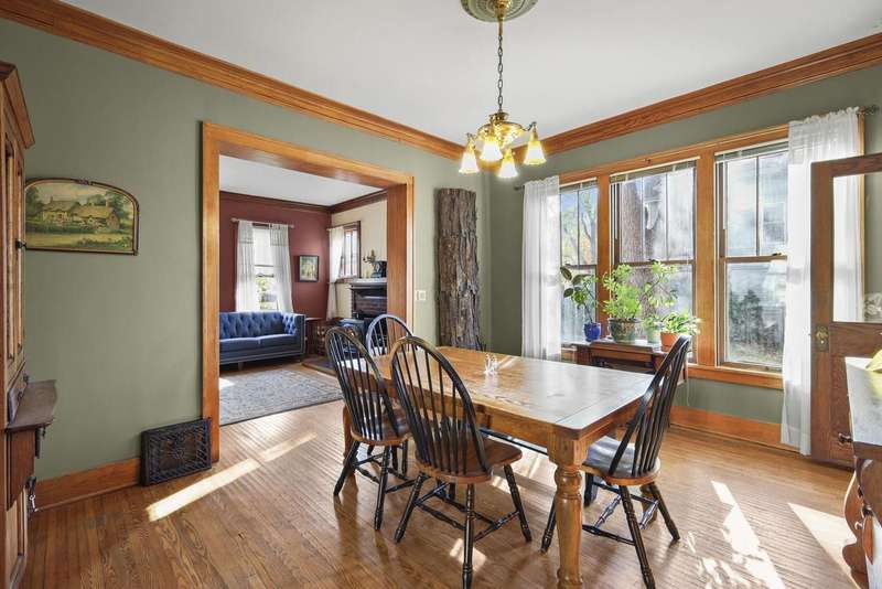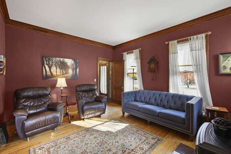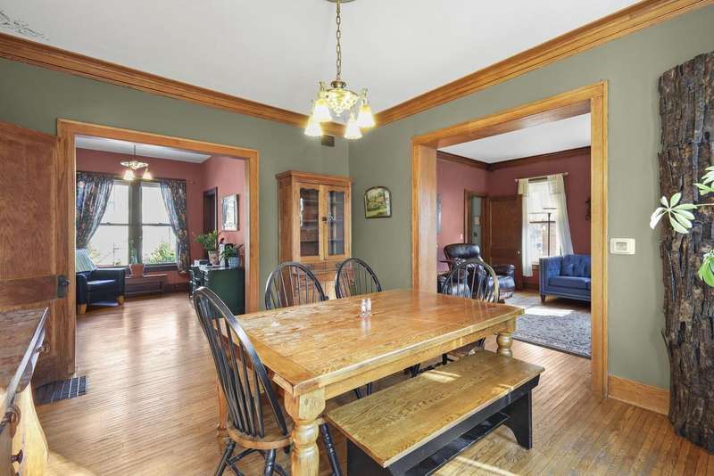 Known as the Henderson House, this 1923 Italianate home w/an oversized lot boasts warmth & charm throughout w/crown molding & original hardwood floors. Located within the Stoughton historic district, an easy walk to downtown & the river. This home features 5 bedrooms, 2 full baths, a summer porch, large 2nd floor laundry, and lots of extra living space. The classic cherry kitchen makes this space shine w/ample counter space and very function. The living room features a wood burning stove, large windows, great sunlight. An elegant dining room & sitting area...Updates include new central air and furnace, a new concrete driveway, newer appliances and w/d in last five years. An extra large garage, 2 sheds, black walnut firewood ready to go. Yard partially fenced yard for pups.