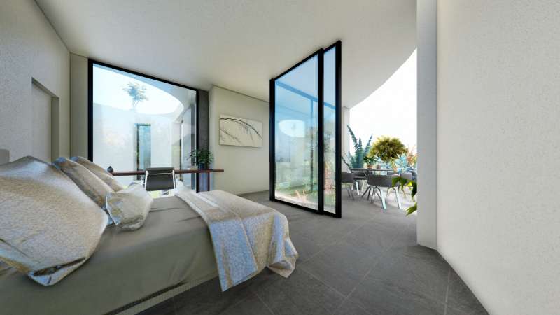 The villa is built on a 500 sqm plot and offers a large private pool surrounded by decking and seating areas. There are also two spacious driveways—one in the garden and another one underground.