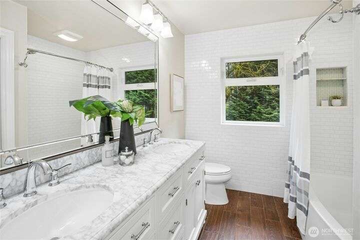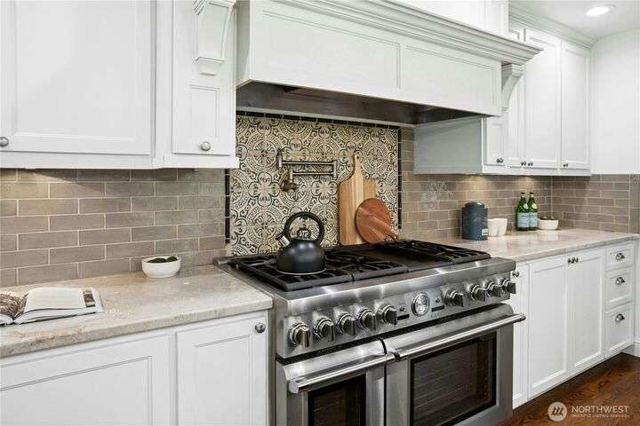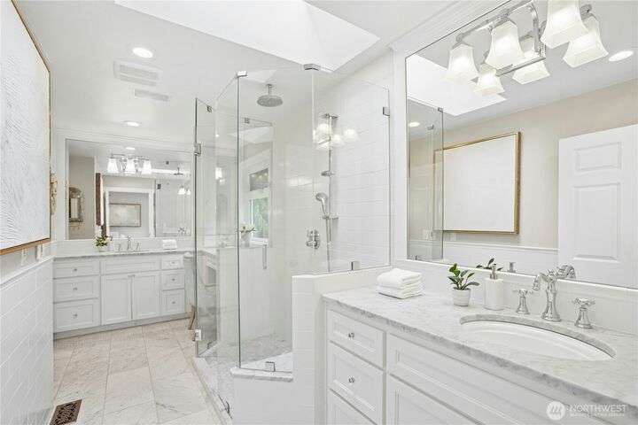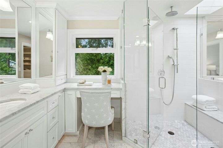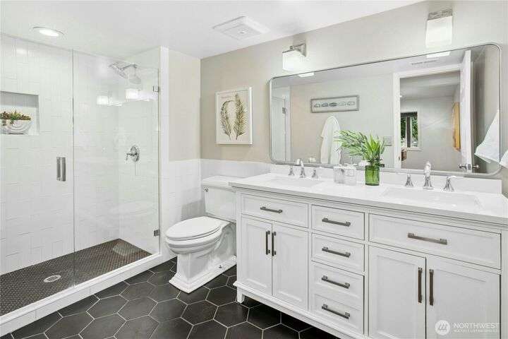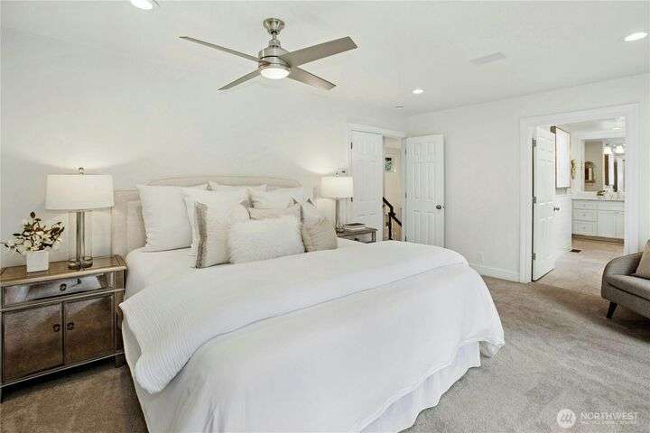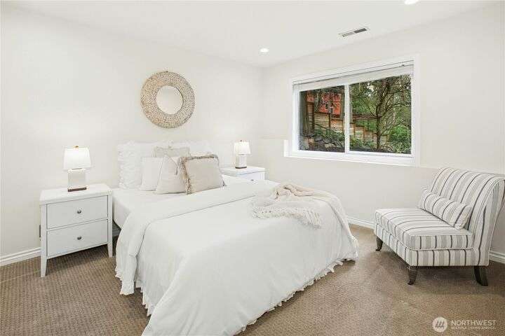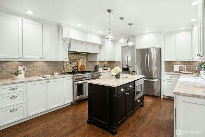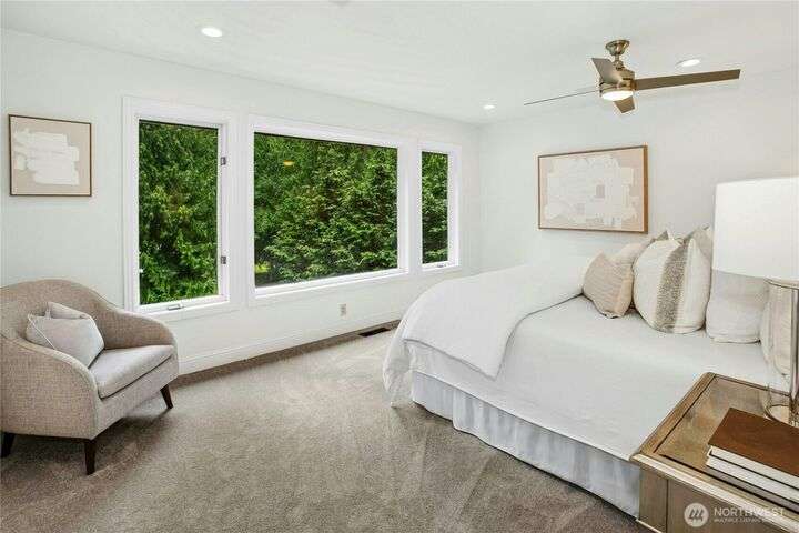 A brilliant life starts here w/ elevated style, 56 feet of waterfront on a shy acre on scenic Beaver Lake. Cohesive indoor/outdoor living provides the ultimate PNW experience. All-weather, high-end composite deck, covered patio & sprawling lawn lead to a private dock w/ floating party barge. Lakeside boathouse for paddleboards, kayaks & water toys. Timeless finishes - honed marble bathroom counters, custom cabinets, heated floor. Epicurean kitchen boasts SS appliances, 6-burner Thermador range w/ custom hood, breakfast nook & gorgeous lake views. Desirable main-level guest suite; expansive lower level w/ a lrg rec room, office, remodeled 3/4 bathroom + potential 5th bdrm. Pre-inspected and 100% turn-key. Min to I-90, schools & amenities.
