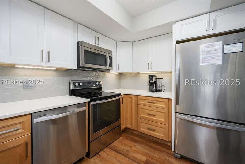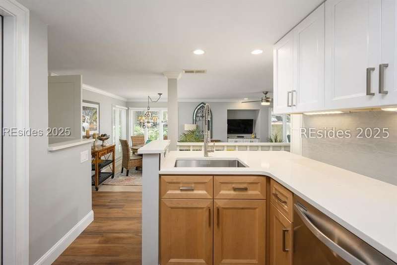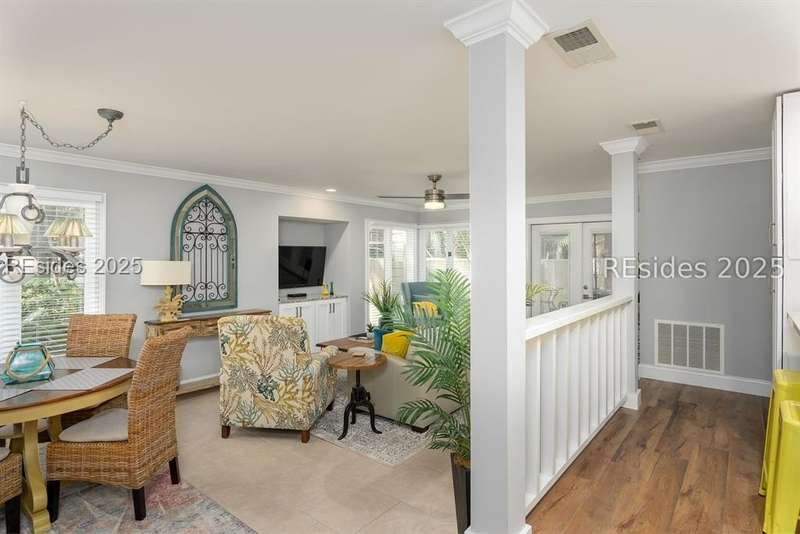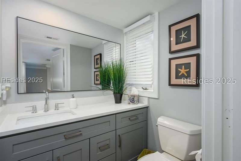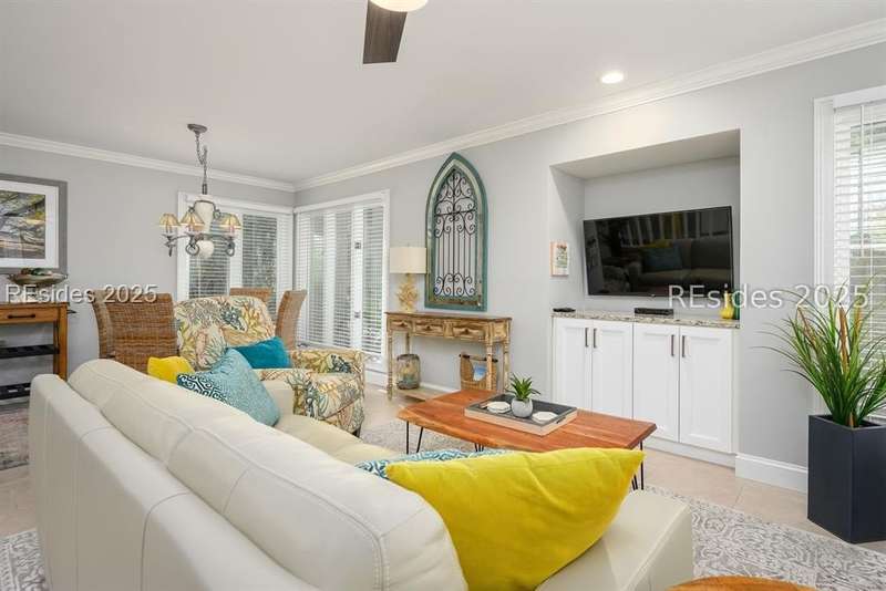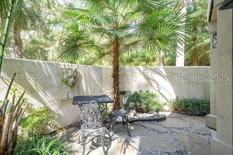Quintessential Beach Villa that is impeccable, inspired and nestled within the exclusive community of Palmetto Dunes. Stunning renovations top to bottom were completed in 2025- features include kitchen fully opened, new LVP flooring, kitchen cabinets, quartz countertops, double ceiling insulation, smooth ceilings, paint, doors, hardware, and fixtures. This large 1 bedroom 1.5 bath first floor end villa with interior and exterior storage is fully furnished in classic coastal decor including a sleeper sofa. The indoor/outdoor aesthetic provides easygoing living spaces opening to a charming covered and walled patio area nicely landscaped for your fur baby to enjoy. St. Andrews has a large private pool and is located close to the premier amenities of Palmetto Dunes to enjoy water sports on the 11 mile lagoon, biking trails, 4 golf courses, tennis/pickleball courts, Beach House, General Store and the pristine Atlantic beaches. Shelter Cove Harbour and Marina (perfect for boat lovers) offers entertainment, restaurants and shopping. Low ownership costs with insurance, cable/internet included in monthly HOA fee. Rental projection $44k. This is truly a coastal retreat like no other and a must see!