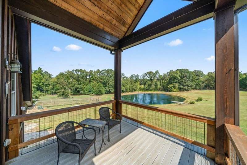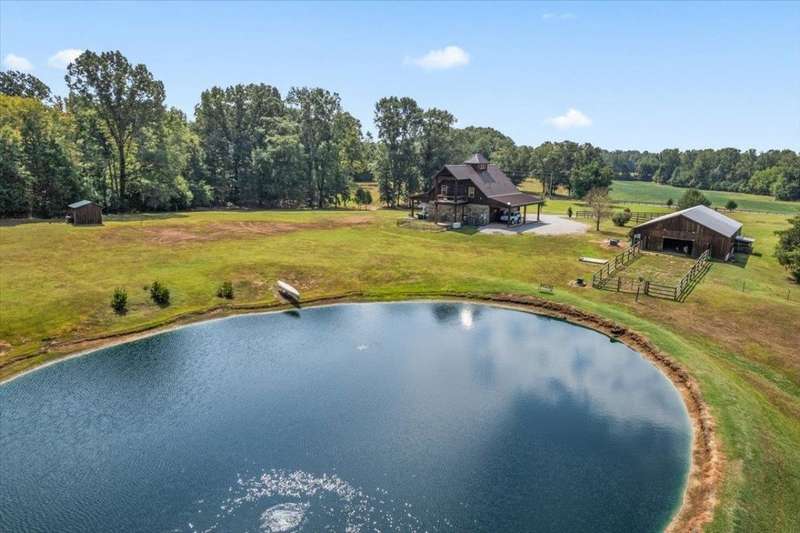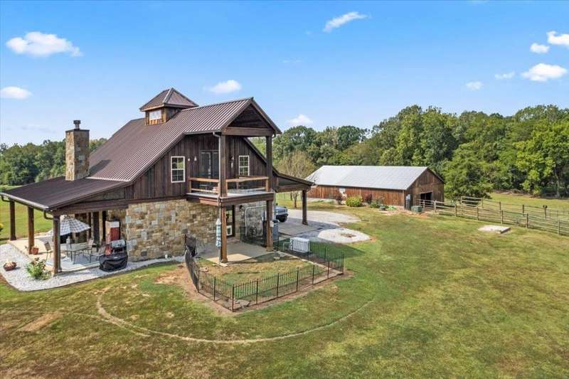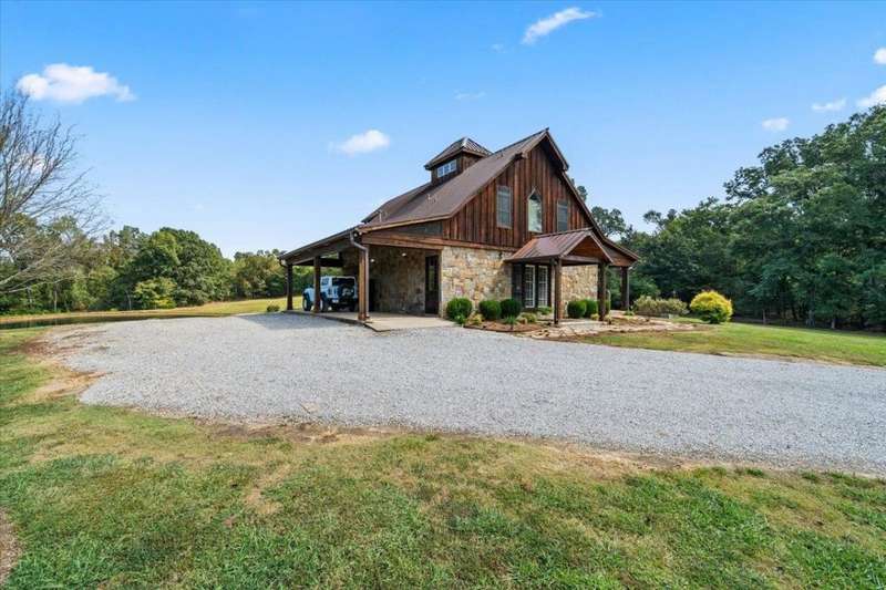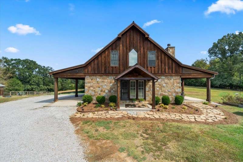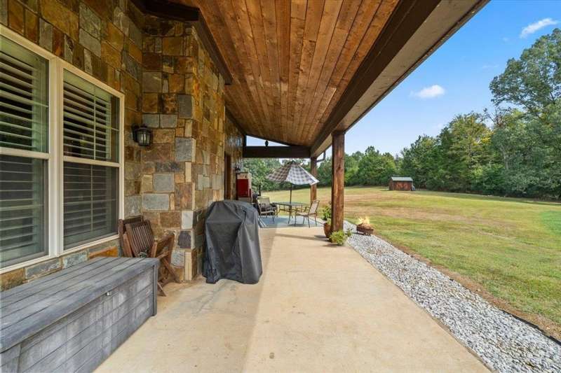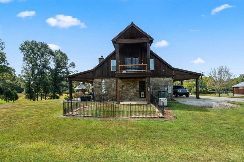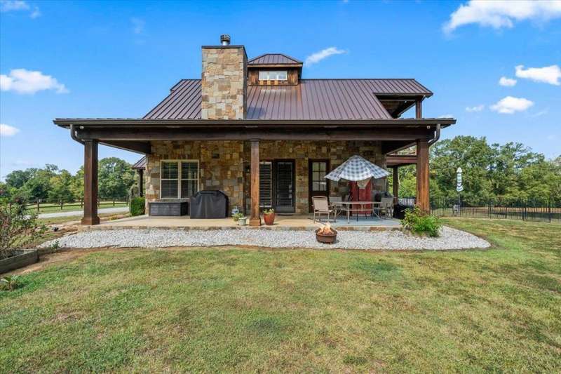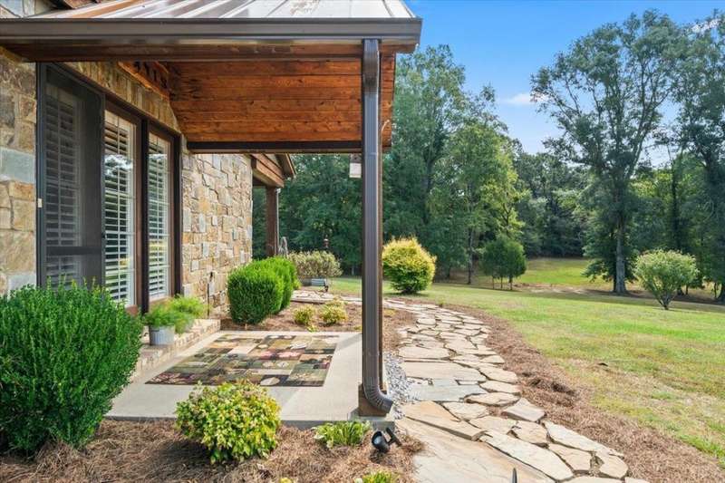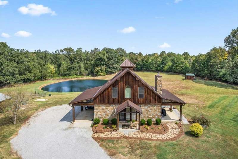 ASSUMABLE FHA LOAN 3.375% on this beautiful, manicured 12.4 acres & home in Rossville, TN w/ 3 beds/ 2.5 bath, stocked pond & barn. This stunning property features a fully stocked & double aerated pond & an impressive 52'x36' barn w/15' ceilings providing endless possibilities. Beautiful trees line the driveway that lead up to the home from the private, gated entry. The property also has the utilities buried so you see no lines or poles and the metal roof is a 50 year roof. The home is thoughtfully designed w/ both style & efficiency & made of stone & cypress wood on the outside. Inside you'll find porcelain tile wood floors, tongue-&-groove pine walls & ceilings (10' ceilings); a stone, wood insert fireplace; plantation shutters & a wrap-around-porch. Energy efficiency is maximized w/ foam insulation in all walls, a whole-house generator; low utility costs $100/month.