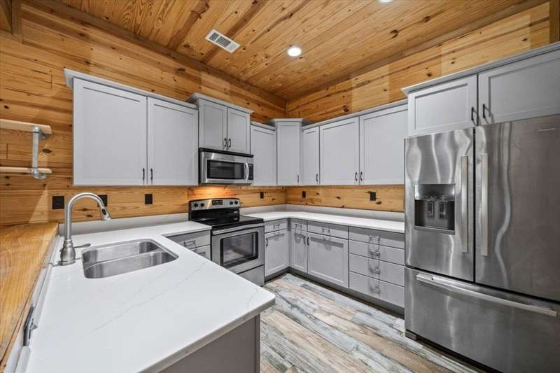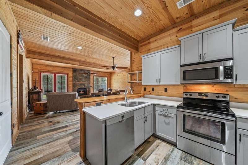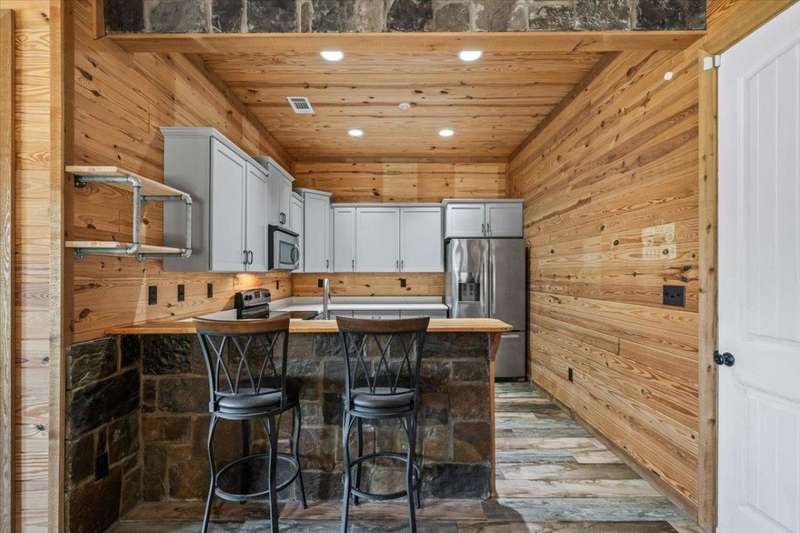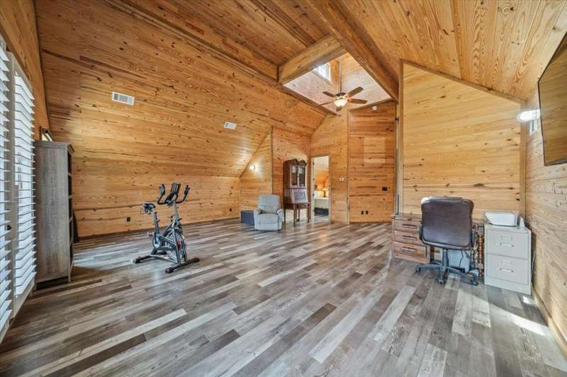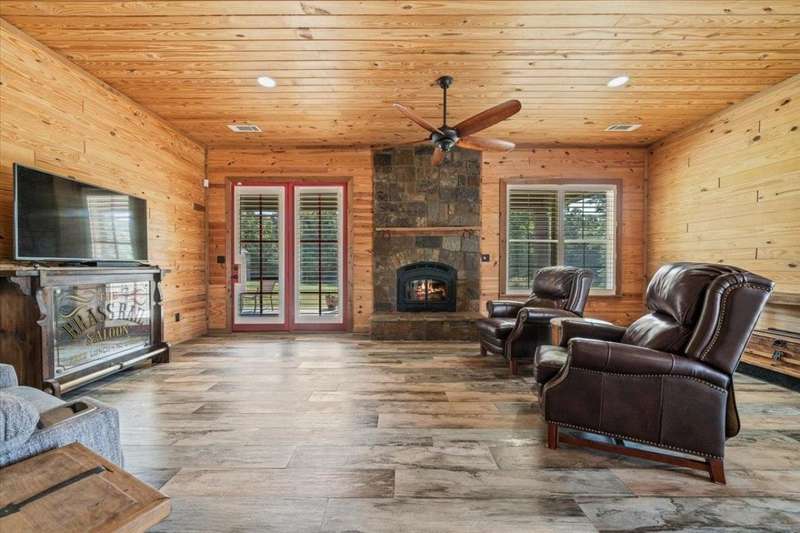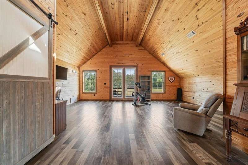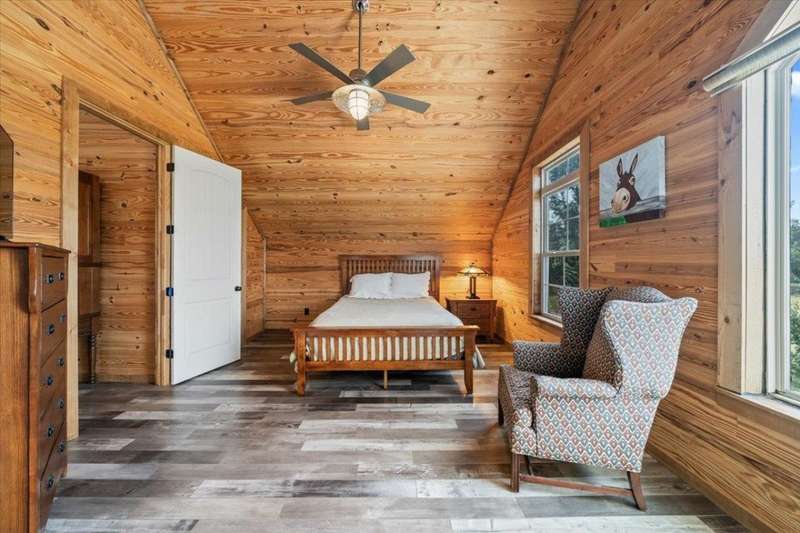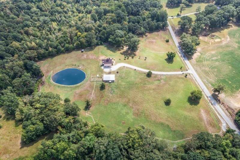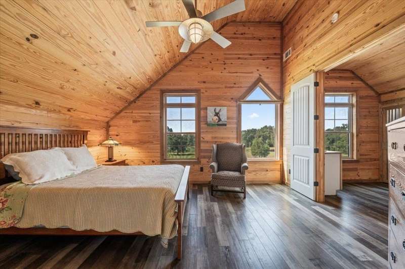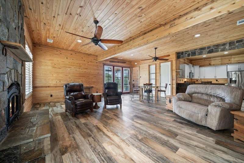 ASSUMABLE FHA LOAN 3.375% on this beautiful, manicured 12.4 acres & home in Rossville, TN w/ 3 beds/ 2.5 bath, stocked pond & barn. This stunning property features a fully stocked & double aerated pond & an impressive 52'x36' barn w/15' ceilings providing endless possibilities. Beautiful trees line the driveway that lead up to the home from the private, gated entry. The property also has the utilities buried so you see no lines or poles and the metal roof is a 50 year roof. The home is thoughtfully designed w/ both style & efficiency & made of stone & cypress wood on the outside. Inside you'll find porcelain tile wood floors, tongue-&-groove pine walls & ceilings (10' ceilings); a stone, wood insert fireplace; plantation shutters & a wrap-around-porch. Energy efficiency is maximized w/ foam insulation in all walls, a whole-house generator; low utility costs $100/month.