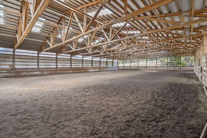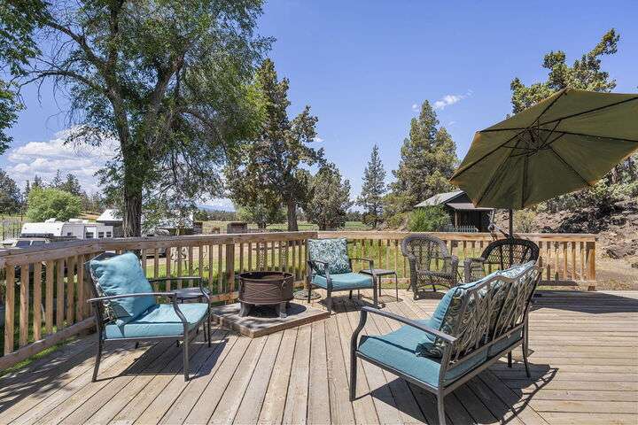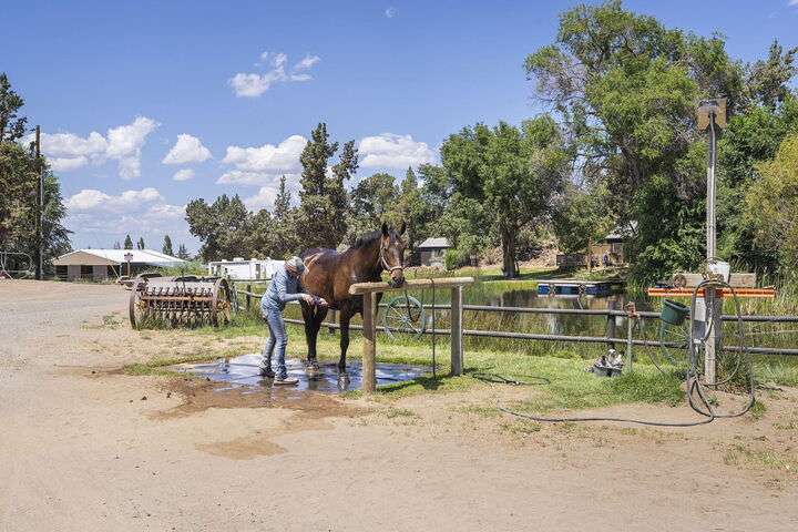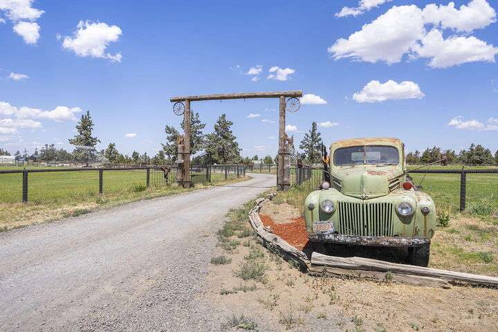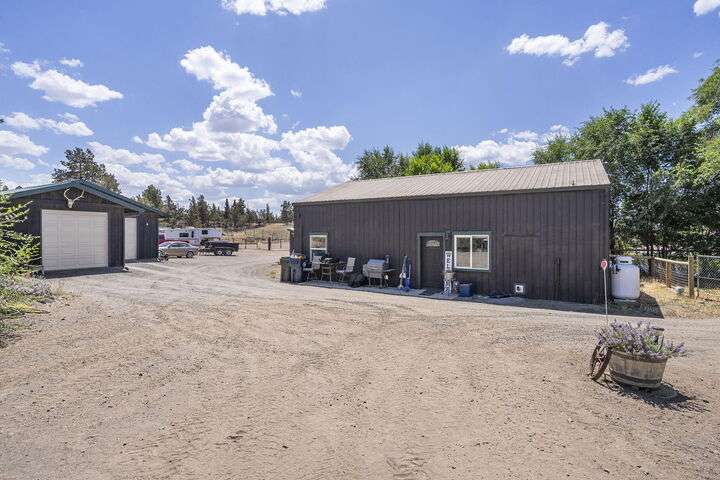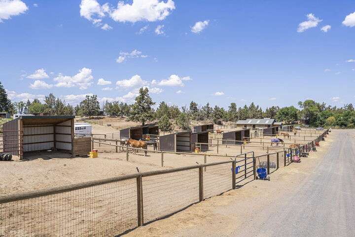 Imagine waking up to the sound of horses and the open skies, just minutes from Bend. Bordering BLM land for endless trail access, this 19.72-acre ranch features panoramic mtn views and thoughtfully designed layout for both private enjoyment and professional use. Multiple barns, 20+ run-in stalls, 14 dry lots and irrigated pasture turnouts. Expansive 120x80 indoor arena, complete with 8 stalls, heated tack room, wash rack, and new LED lighting and skylights. Covered 60' round pen, 120x84 outdoor arena. 1940s-built home offers 2bd, 2ba, office and spacious living areas, plus new paint, flooring and ductless HVAC/cooling. Two large heated and insulated shops offer parking and room for hobbies or workspace. Currently operating as a fully rented boarding facility, this turn-key property is ready to generate income from day one. Whether you're building a business or simply living your dream surrounded by horses, this ranch delivers.
