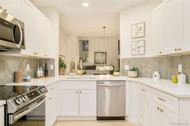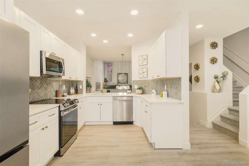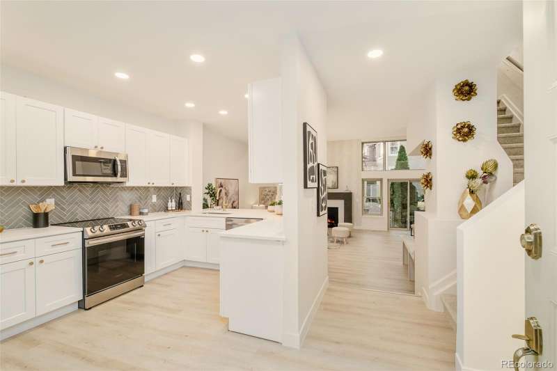 Experience spacious, contemporary living in this beautifully renovated Summerhill Condo. Offering quality finishes, with an abundance of functional living space, this rare find combines a highly desirable location with ideal outdoor space! Every detail has been thoughtfully designed throughout, featuring an open-concept layout with generous rooms, a finished basement, and a primary suite with a fabulous full bath. As you enter into the Great Room, the soaring ceilings and stylish fixtures, are complemented by a cozy sitting bench providing a unique convenience for everyday living! The modernized kitchen is streamlined with sleek cabinetry & countertops, featuring premium stainless steel appliances, a breakfast bar, and opens to the inviting dining area! The half-bath completes the main level. A generous primary bedroom that focuses on comfort and space, you will enjoy dual closets, a fully updated ensuite bath, high ceilings, and plenty of room for storage. The secondary bedroom is perfect for an in-home office or guest suite! The finished basement offers flexibility and expands your living space with a large recreation room, bedroom, oversized 3/4 bath, laundry area, and ample storage. Delight in the private, fenced-in patio, creating an ideal outside area for entertaining or relaxing any time of the year! This fantastic interior location, patio and one-car garage add to the value of this home! An unbeatable location you are just minutes to DTC, the Southglenn outdoor shopping mall, dining, movie theatre, and near-by Willow Springs Open Space, South Suburban Sports Complex, and light-rail stations. You will appreciate this well-maintained community with a pool, lots of "green space", and mature trees & shrubs. This condo & community offers the perfect blend of space, style, and location-an exceptional residence and opportunity not to be missed!