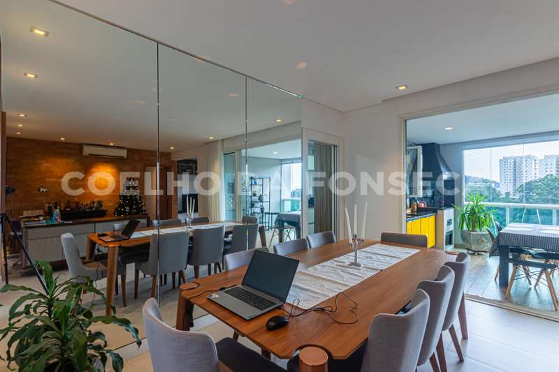 Apartamento no condomínio PREMIUM TAMBORÉ, com 156m² área privativa/útil, 3 dormitório(s), 3 suíte(s), 3 vaga(s), 4 banheiro(s), churrasqueira, terraço, mobiliado (a), com renda , ar condicionado, reformado (a).