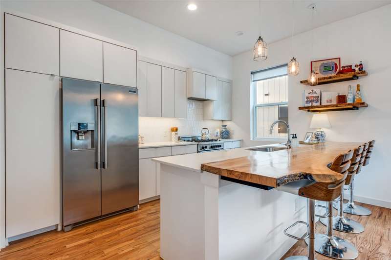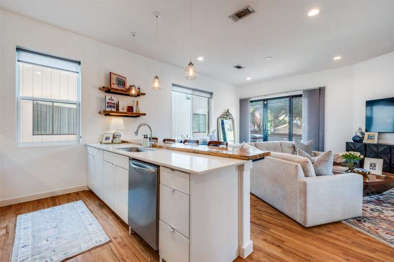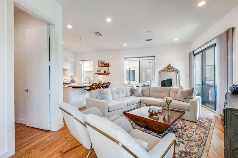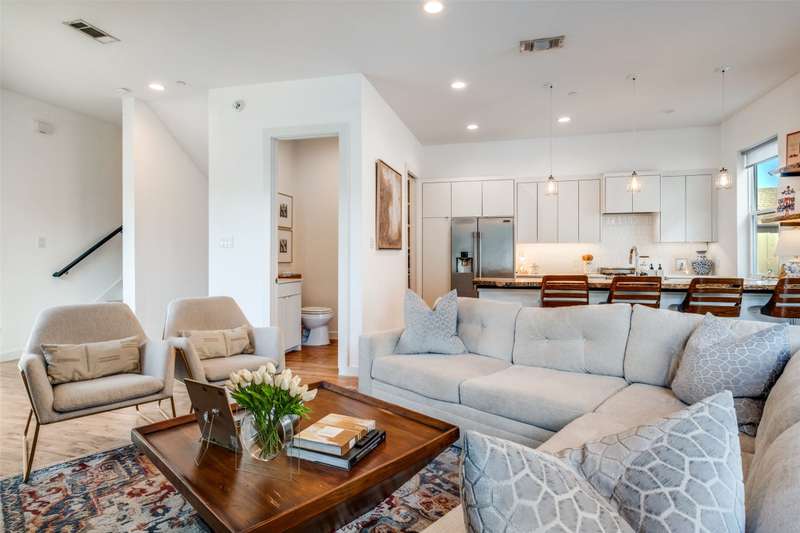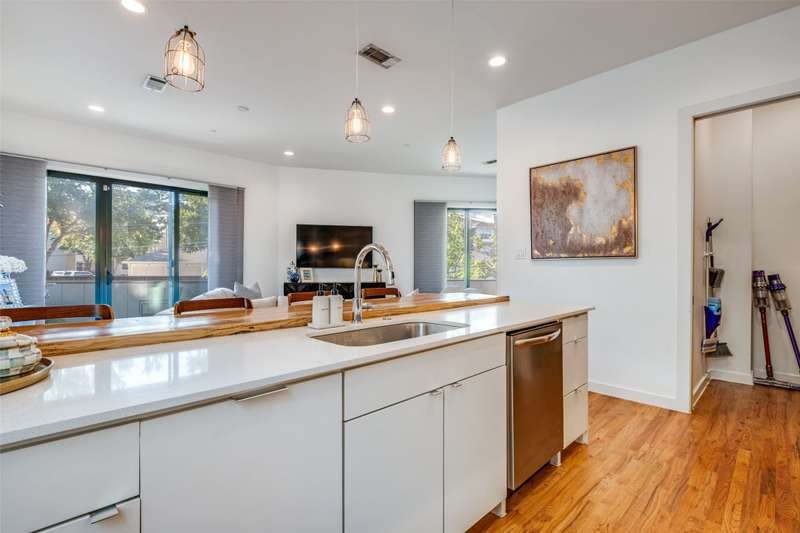 Welcome to Your Stylish City Retreat! This stunning modern three-story condo designed by Marek Architecture is the perfect blend of sleek style, comfort, and urban excitement! Nestled in flourishing East Dallas, youll love being just minutes from Downtown, Uptown, West Village, Deep Ellum, Henderson Avenue, and Greenvilleall the best dining, shopping, and entertainment right at your fingertips! Step inside and be wowed by the light-filled open floor plan featuring towering windows, soaring ceilings, recessed lighting, and gorgeous wood floors. Entertain with ease in the spacious living area or cook like a pro in the chef-inspired kitchen, complete with: Bertazzoni range, Live-edge wooden breakfast bar & custom shelving, quartz counters, Walk-in pantry with wine cooler & pocket door! Enjoy a meal at the beautiful Live-Edge Split Ash Wooden breakfast bar and the shelving highlight the kitchen! ALL kitchen appliances and the washer and dryer STAY! Two luxurious bedrooms, each with a private ensuite, make the perfect retreats! Step out onto your two balconies and soak in the city vibesor unwind in your front fenced-in yard with artificial turf and fresh landscaping. Other features youll love: Oversized two-car garage with huge storage closet! Utility on the 3rd floor for convenience. Modern fixtures & finishes throughout! No detail has been overlooked in this home thats designed for todays lifestyle! Whether youre relaxing, entertaining, or exploring the city, this condo delivers the ultimate urban living experience. With prime location + sleek design + thoughtful amenities, this one is a rare gem you dont want to miss!