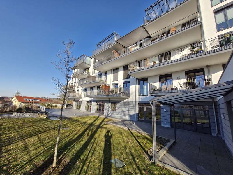 DEAR INTERESTED PARTIES We are pleased to be able to offer you an extensively renovated, well-kept 2-room apartment in the sought-after residential area of Würzburg-Frauenland. Please note: According to the house rules, only people who are at least 55 years old may move in here - unfortunately, exceptions are not possible! Built in 2013, first occupied in 2014 and last extensively renovated in 2025, this apartment itself, but also the small senior citizens' residential complex as a whole, impresses with its contemporary furnishings, comfort and well thought-out details. The modern, bright, almost as good as new barrier-free apartment - of course with elevator in the building - offers optimal comfort and functionality on approx. 69 m² of living space with a large balcony, modern fitted kitchen, storage room in the apartment and cellar compartment in the basement. The residents of the building also have various amenities at their disposal, such as a large coffee lounge, as well as a large reading, games and TV room with a library. In front of these two communal rooms is a spacious outdoor terrace, which is furnished in the warmer months. There is also a sauna, infrared cabins, fitness room, visitor parking and a reception area which is open until 13:00. In the two-room apartment available for rent, you will find energy-saving underfloor heating and parquet flooring that is currently being freshly sanded and sealed. The apartment is also being repainted as part of the comprehensive renovation. In the open-plan living room there is a recessed kitchen area with a modern, functional fitted kitchen. The large, floor-to-ceiling windows provide plenty of natural light, while the electrically operated external blinds in front of them provide shade whenever necessary or desired. Another highlight of the apartment is the spacious, approx. 13 m² terrace-balcony. On the right-hand side of the hallway is the spacious bathroom with upscale fittings such as a floor-level shower, mirror cabinet and washbasin combination with vanity unit, as well as a towel radiator. A spacious checkroom is located to the left of the apartment entrance. The practical pantry/storage room right next to the fitted kitchen is a plus point. The apartment also has its own cellar compartment. A parking space can be rented subject to availability (one is currently offered in the building's own parking garage). The building also offers numerous communal facilities that increase both the living comfort and the quality of life of the residents: A coffee lounge, a library and modern wellness and fitness facilities such as a sauna, infrared cabins and gym. In summary, this property offers attractive living quality with sophisticated comfort and accessibility. This makes it particularly attractive and suitable for mature people - nowadays referred to as "best agers" - who value a high-quality, comfortable and well-maintained living environment. Arrange an individual viewing appointment to see the qualities of this attractive apartment for yourself. Secure your place and enjoy the comfort and amenities offered by this property in Frauenland. The CALM RENT is € 865 incl. fitted kitchen plus € 235 including heating costs. FREE from 01.12. 2025.