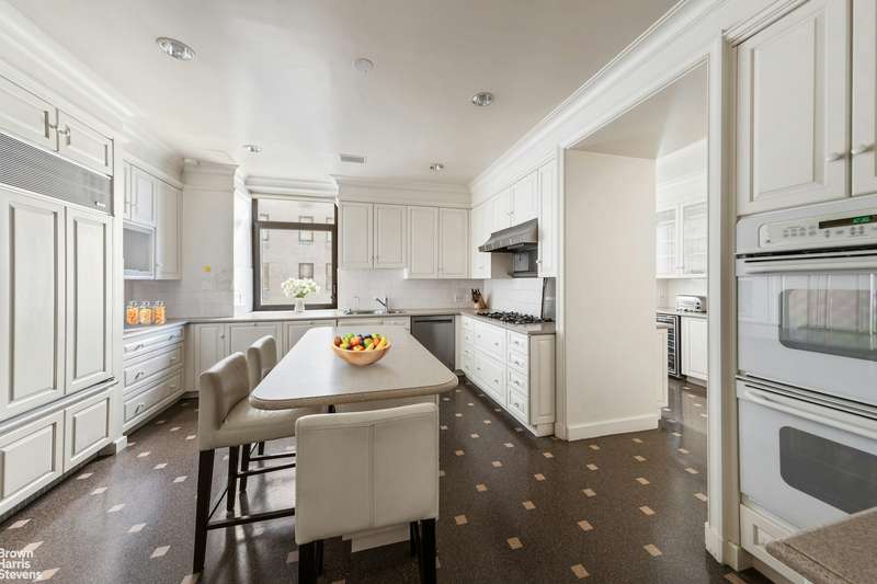 The luxurious primary bedroom suite is a serene retreat, featuring abundant natural southern light and sweeping river views, along with a private dressing room and en-suite bath. Three additional generously sized bedrooms, one with its own en-suite bathroom, and two sharing a Jack and Jill bathroom, provide ample space and privacy. In addition, the apartment includes two staff rooms and baths, as well as a powder room located just off the foyer. A large eat-in kitchen is accompanied by a butler's pantry. There is also a full laundry room off of the staff rooms.