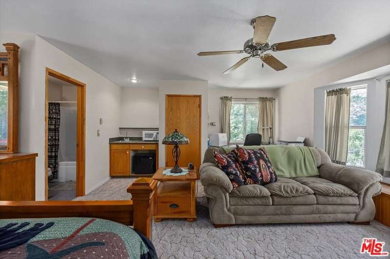 Built in the mid-60s, the two-story dwelling with a studio/in-law suite stands in the quaint town of Kernville, a few hours north of Los Angeles, where everything from wilderness hiking to whitewater rafting is outside your front door. In addition, the property includes access to Bubbles Beach. It's a private beach moment away that's reserved for River kern property owners, where you have riverfront access to spend a relaxing afternoon along the sandy banks of the mighty Kern River. When you are at home, the main level of the two-story dwelling features a floor-to-ceiling brick fireplace in the living room, a dining area that provides a spot for morning coffee and homemade meals, and a roomy den with a Malm-style fireplace. The yard awaits your green thumb. There's income potential with the studio above the garage. It has a separate entrance and combines a bedroom, kitchenette, and work area with bay windows looking toward the mountain tops.